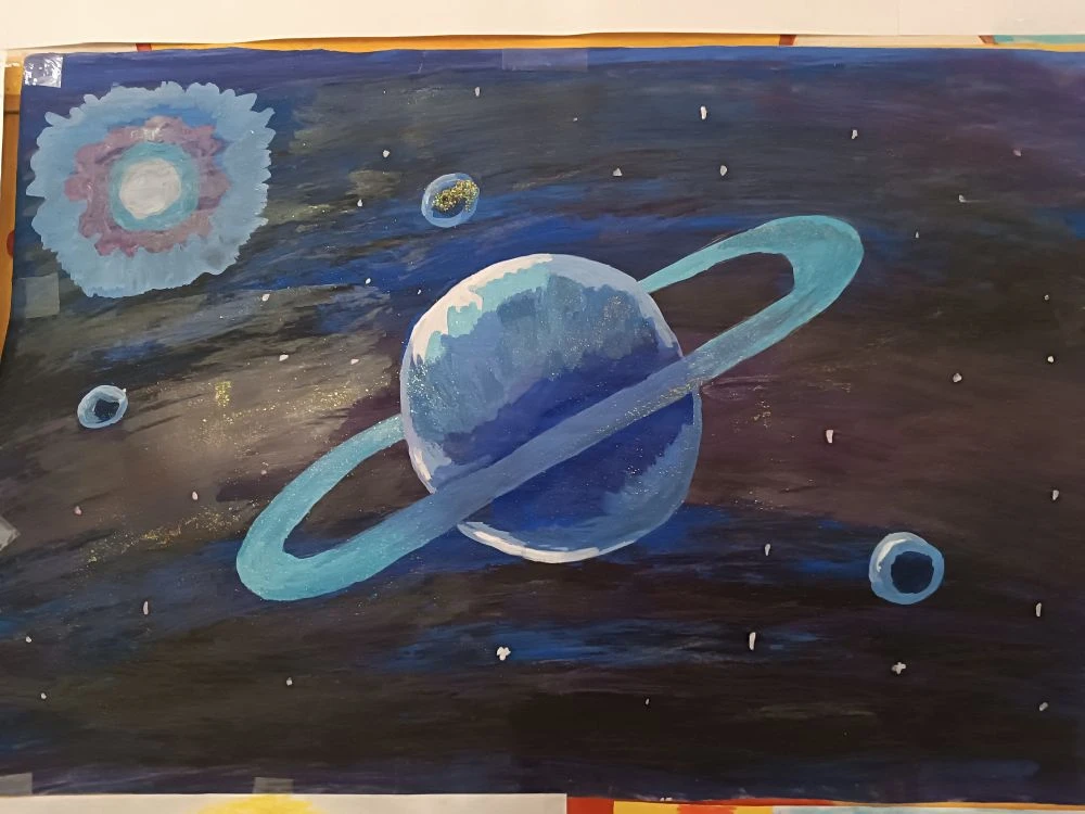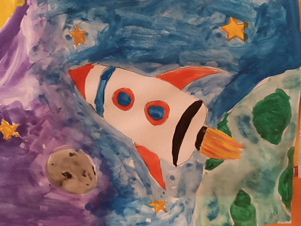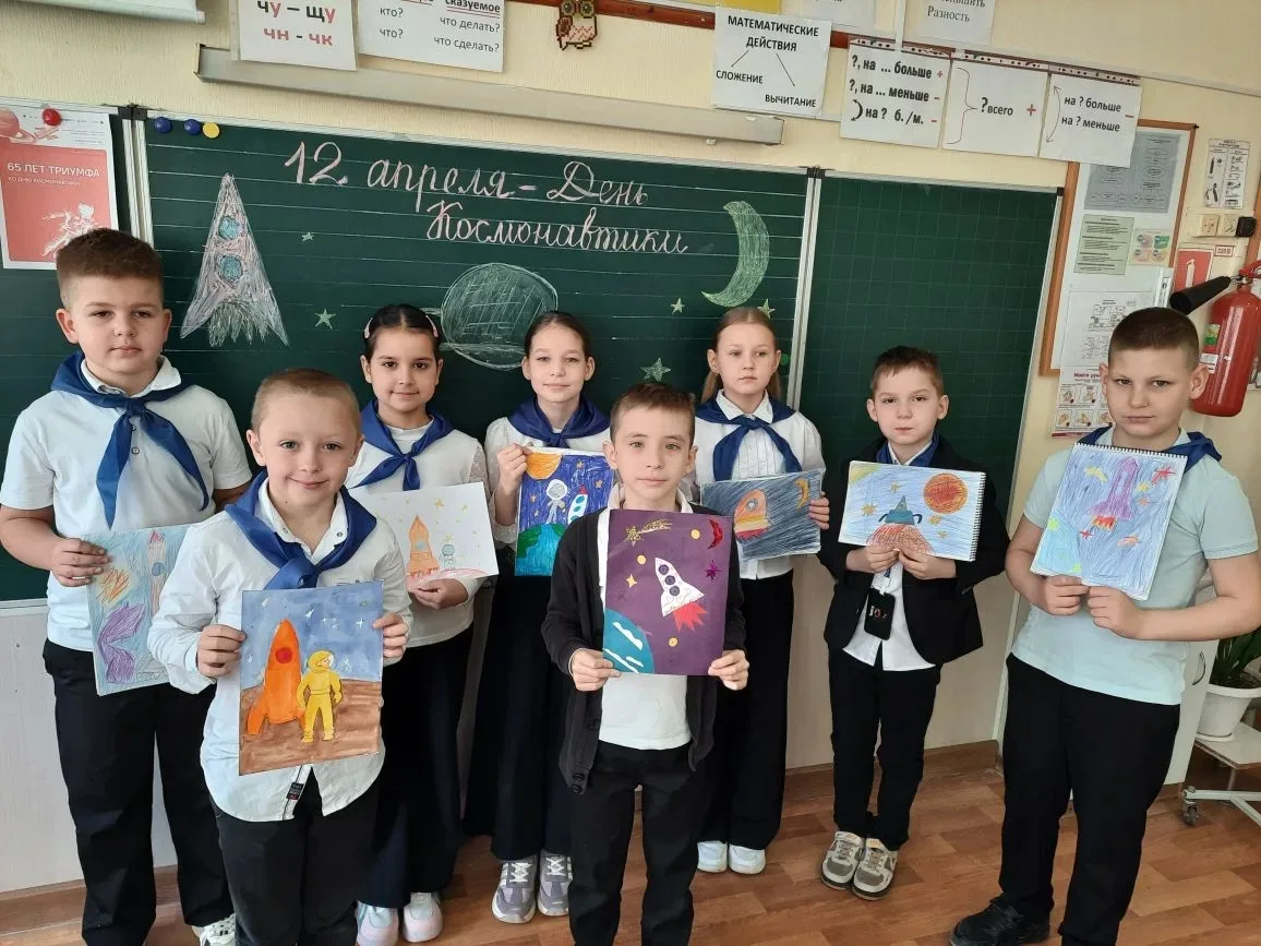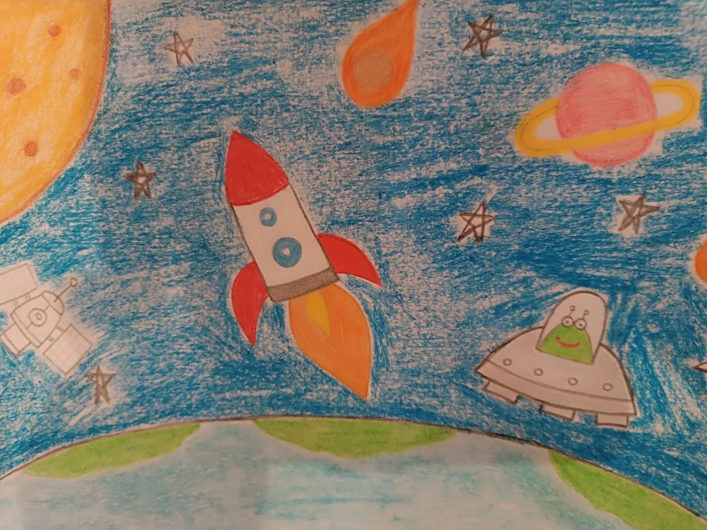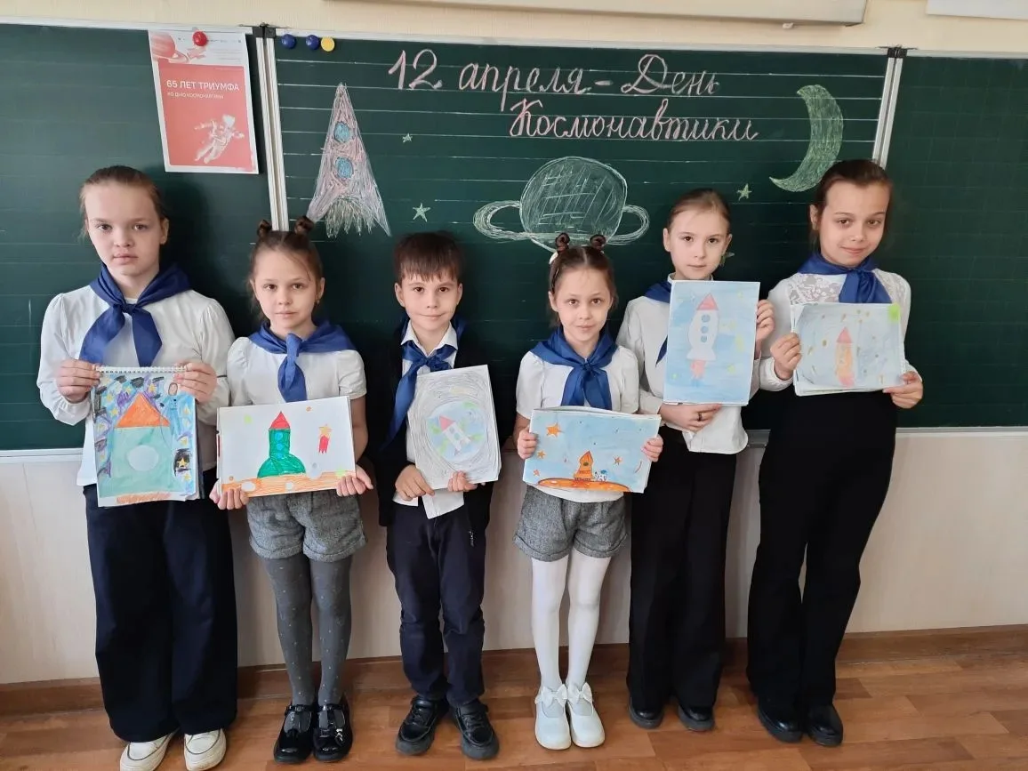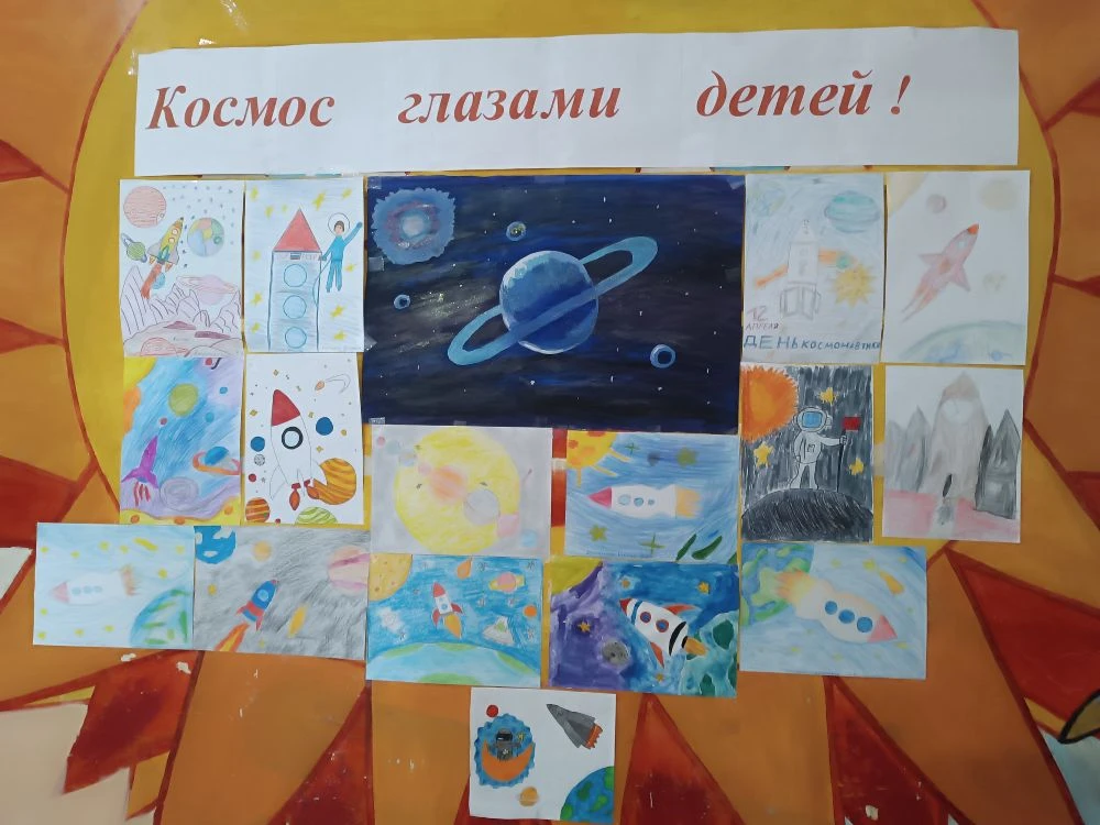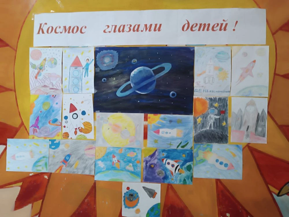 ✅К Дню космонавтики учащиеся 1-11 классов приняли участие в выставке рисунков "Космос глазами детей"