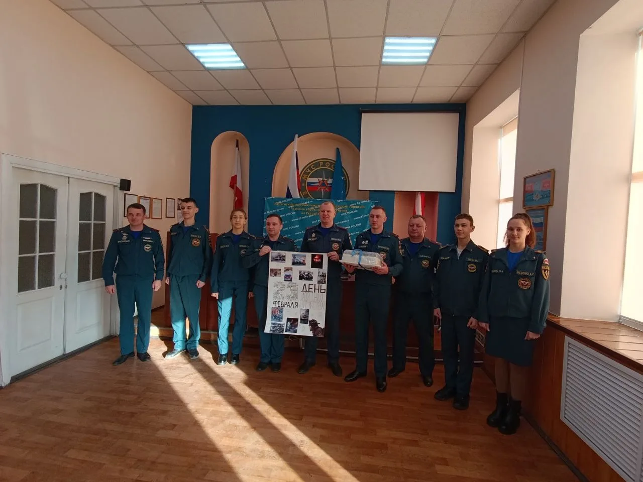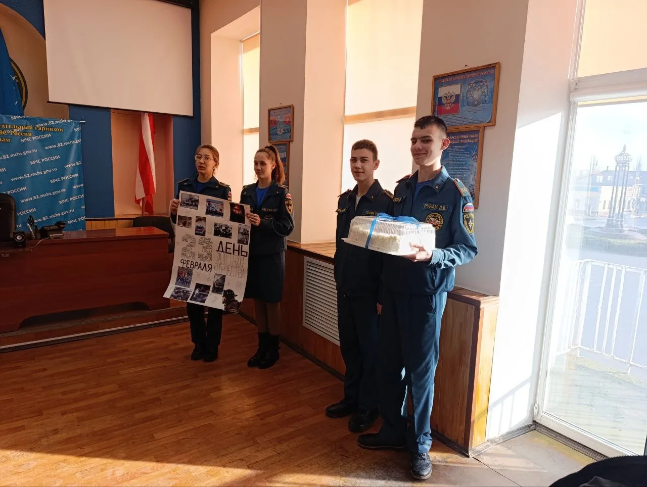 🧯 Кадеты МЧС 8Б класса в честь праздника дня защитника Отечества поздравили сотрудников 15 пожарно-спасательной части 3 пожарно-спасательного отряда Федеральной противопожарной службы Главного управления МЧС России по Республике Крым .