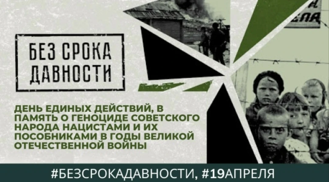 ✅ В память о геноциде советского народа нацистами и их пособниками в годы Великой Отечественной войны ежегодно 19 апреля в рамках проекта «Без срока давности» по всей нашей стране традиционно проходит День единых действий, целью которого является сохранение исторической правды о преступлениях нацистов и их пособников в отношении мирных советских граждан и военнопленных красноармейцев в годы Великой Отечественной войны на оккупированной территории и формирование неприятия нацизма в любых его проявлениях – как в исторической ретроспективе, так и в современности.