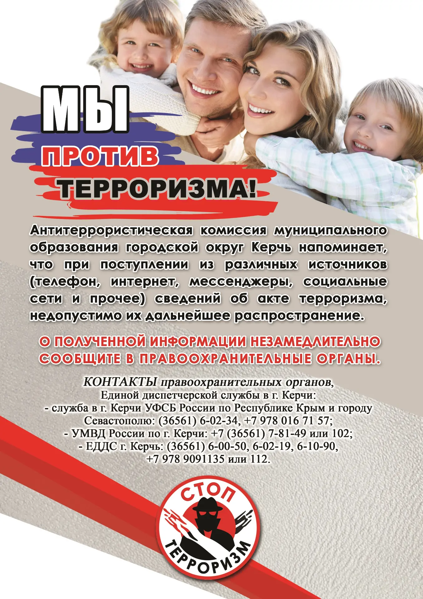 Скажем терроризму - нет! Будьте бдительны!