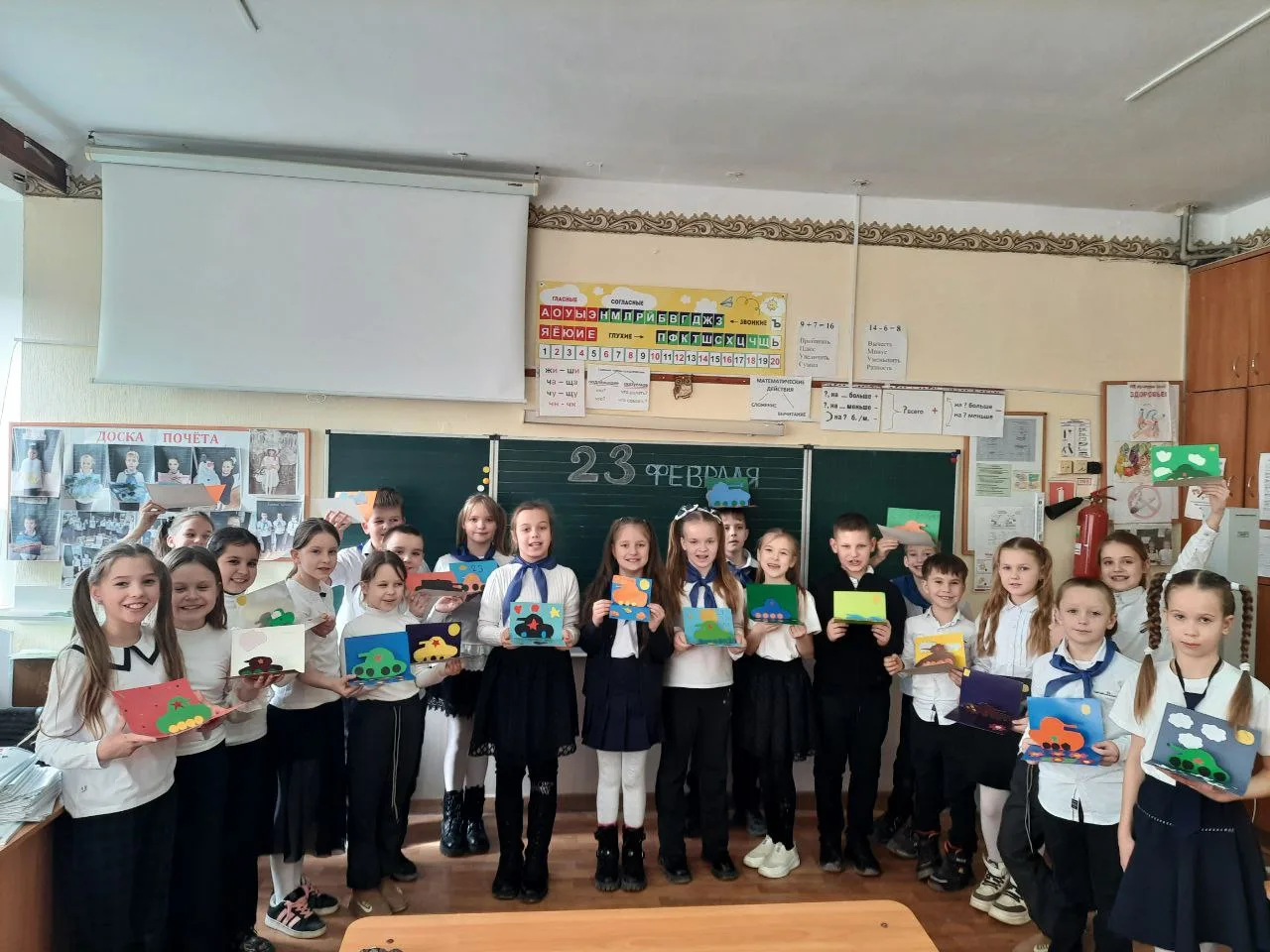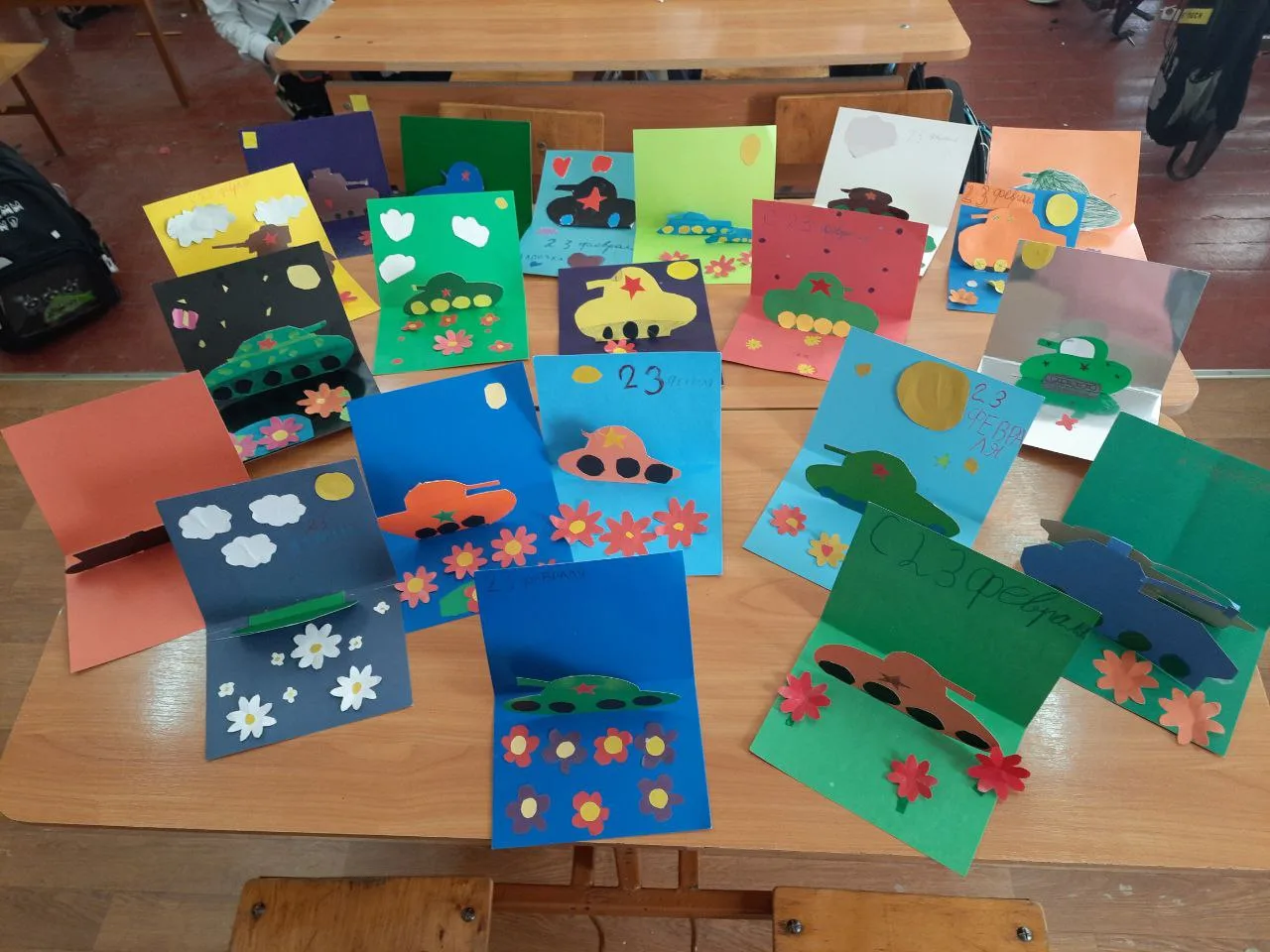 ✅Ученики 2-В класса поздравили своих пап и дедушек с прздником 23 февраля. Смастерили для них замечательные поделки-открытки.