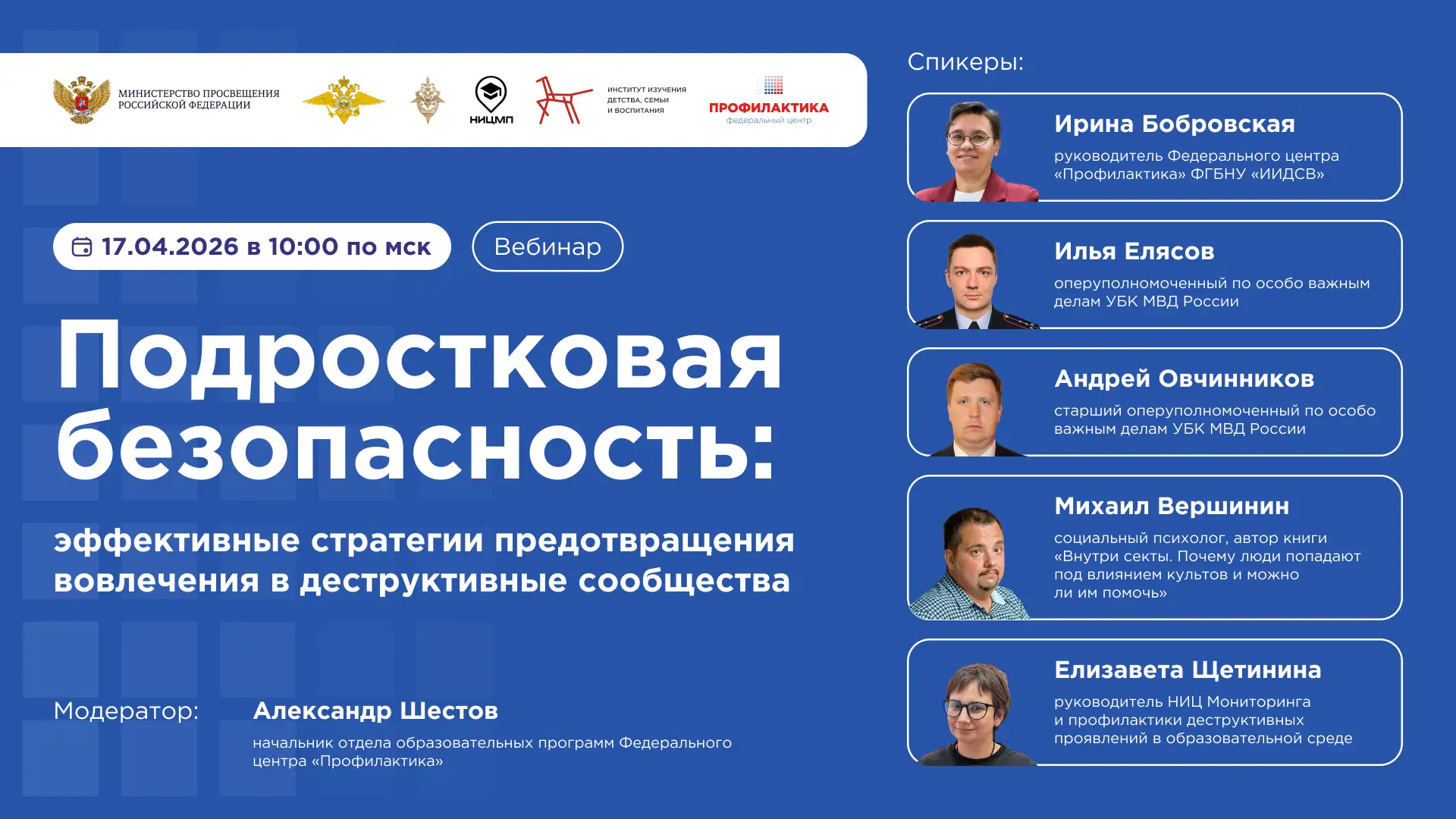 Вебинар «Подростковая безопасность: эффективные стратегии предотвращения вовлечения в деструктивные сообщества»