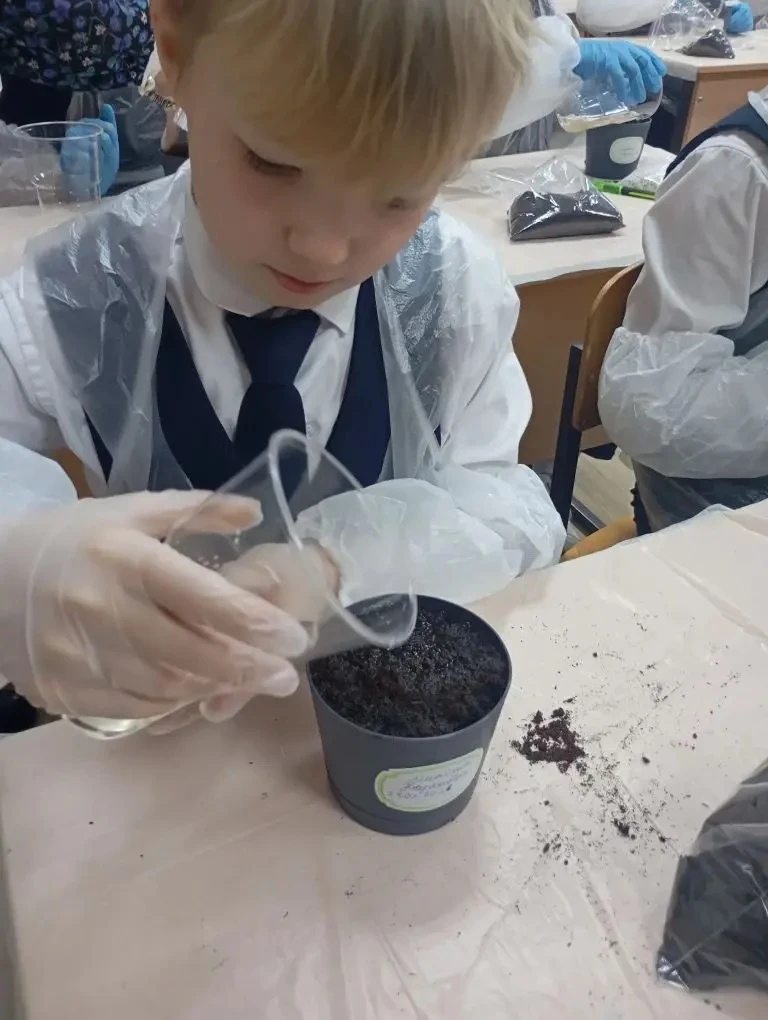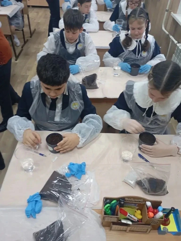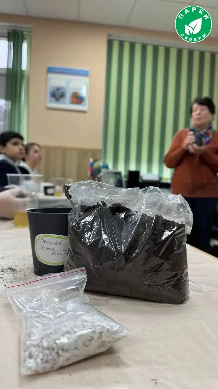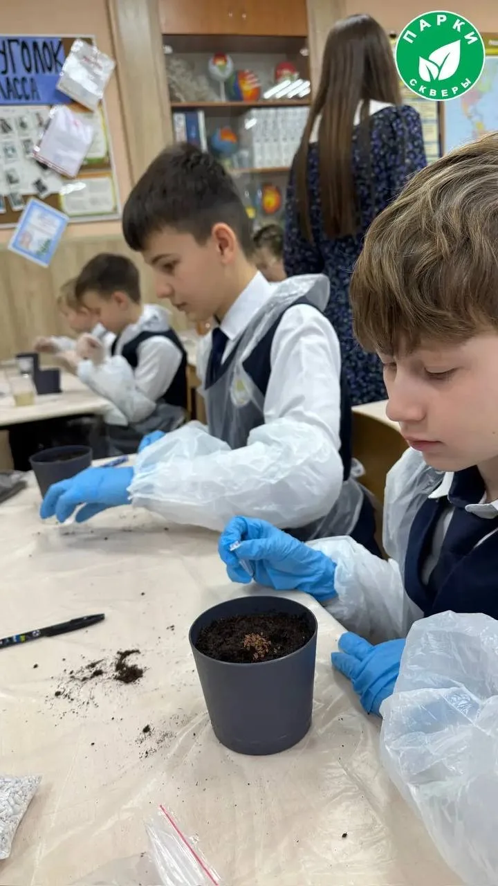 Пятиклассники вместе с опытным агрономом Надеждой Дятел из ГБУ «Парки и скверы» посадили семена кипариса и белой акации. Саженцы именные: каждый ученик подписал горшочек, где будет расти семечко, посаженное его руками.