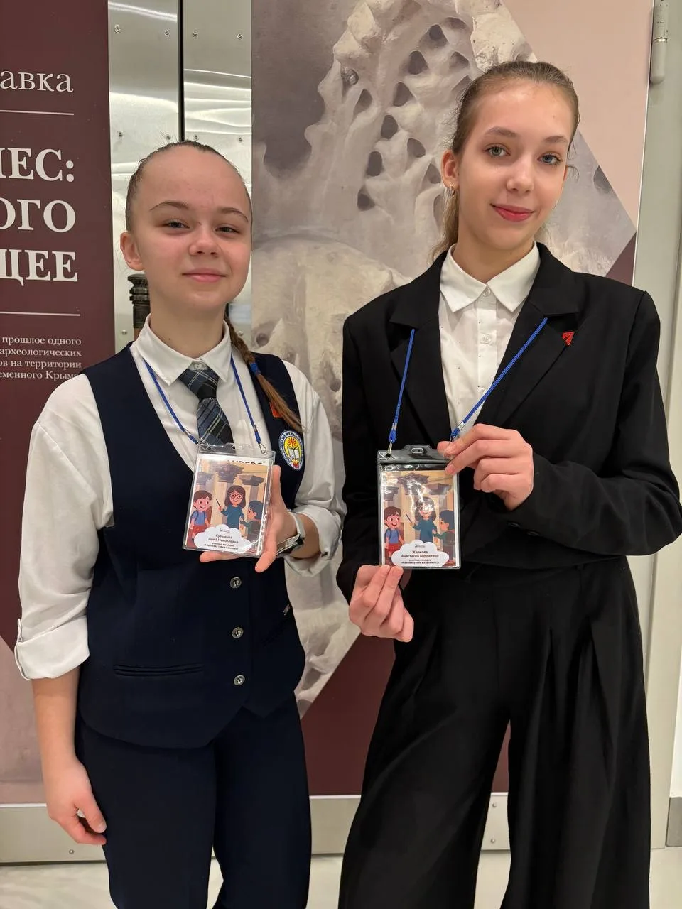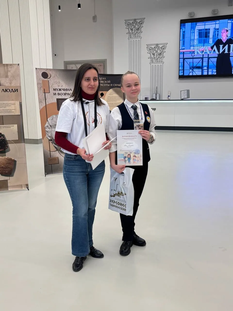 ❗️Победителя конкурса «Я расскажу тебе о Херсонесе…» тайным голосованием выбрали не члены жюри, а гости, обучающиеся 5 класса. Кузьмина Анна и Жаркова Настя -финалисты конкурса. Они получили почетные дипломы и призы от музея-заповедника.