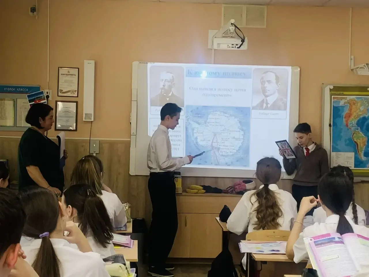 С увлекательного путешествия к берегам Антарктиды обучающихся 7-х классов началась предметная неделя кафедры естественно-математических наук нашей гимназии. Вместе с учителем географии Елисеевой Олесей Валерьевной ребята исследовали особенности материка, узнали историю его открытия, примерили на себя роль первооткрывателя новых земель.