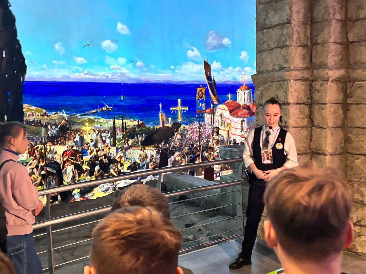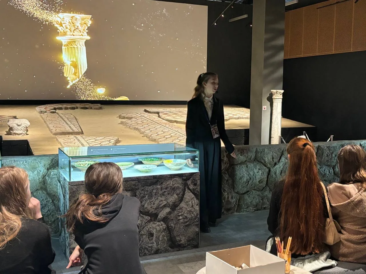 👏🏻Анна Кузьмина, обучающаяся 8-В класса нашей гимназии, рассказала посетителям о крещении в древнем Херсонесе князя Владимира и его дружины. Анастасия Жаркова, 8-Б класс, познакомила гостей с великолепной поливной керамикой и мозаиками византийского Херсона.