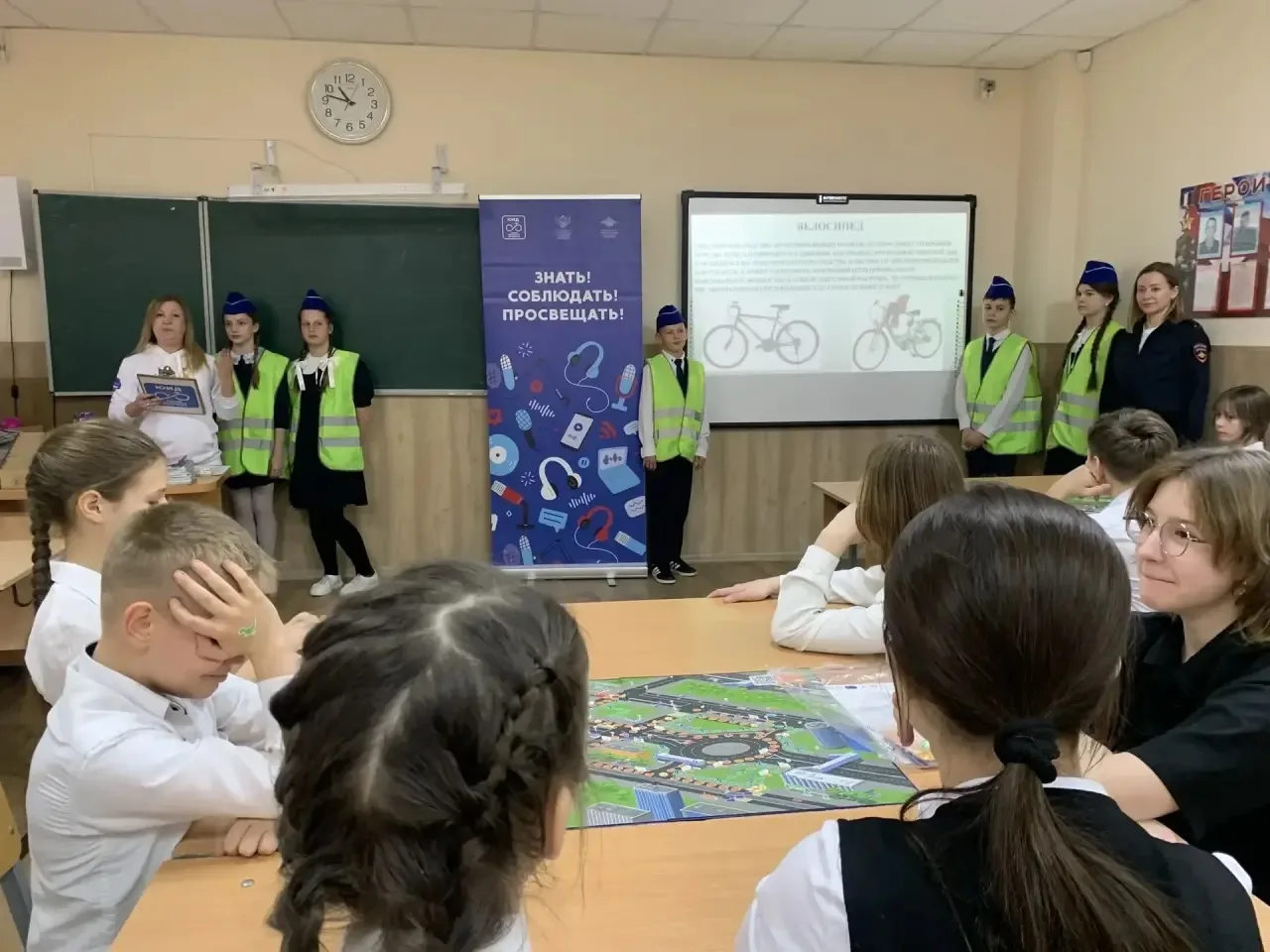 Немчинова О. С., методист Центра по профилактике ДДТТ СЮТ, Яковлева Т. В, старший инспектор ОАРи ПБДД, провели интерактивную игру - урок Академии ЮИД, направленный на снижение аварийности с участием несовершеннолетних.