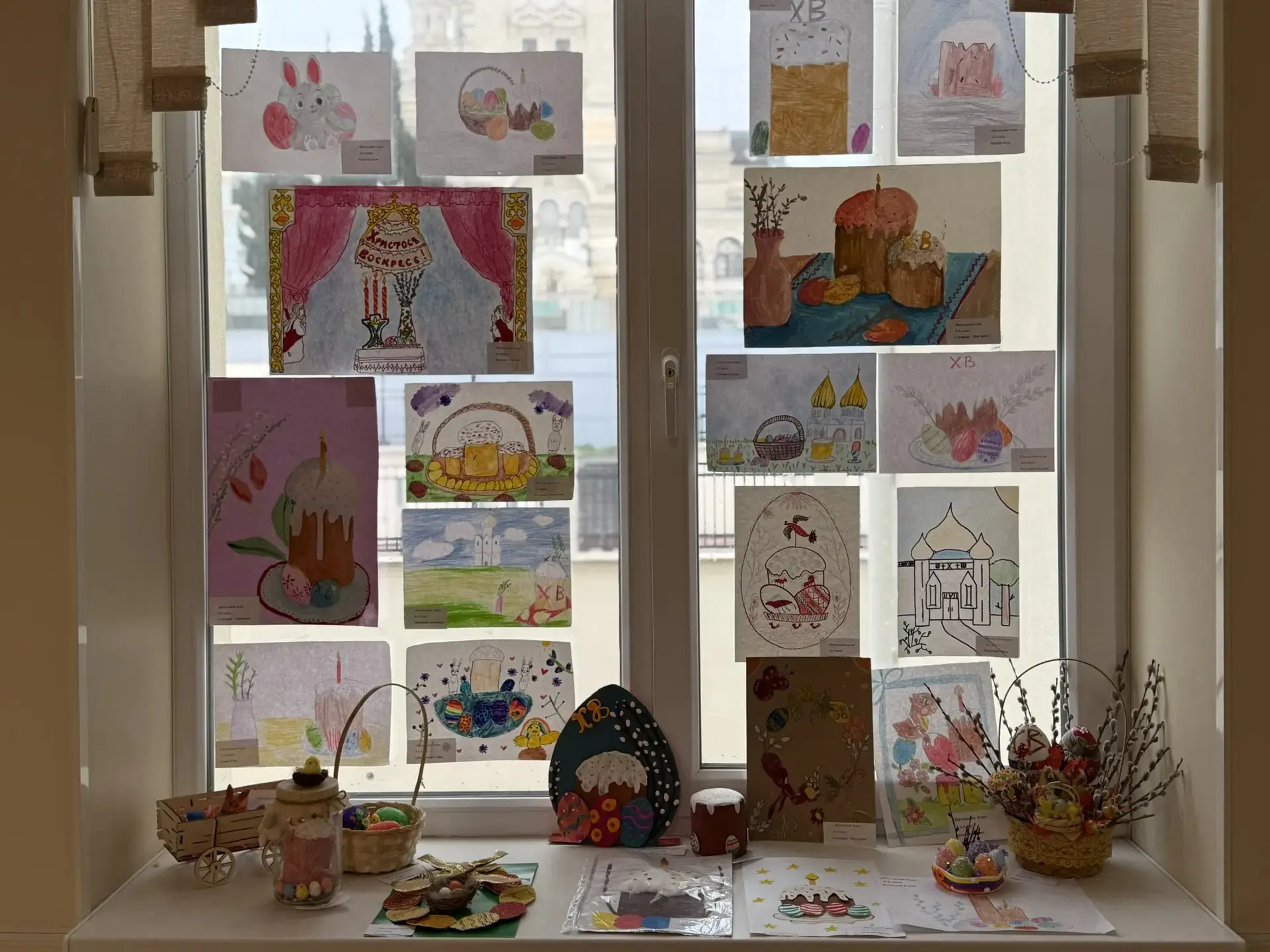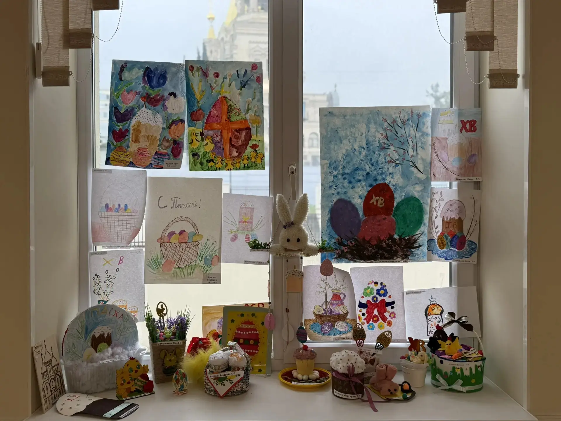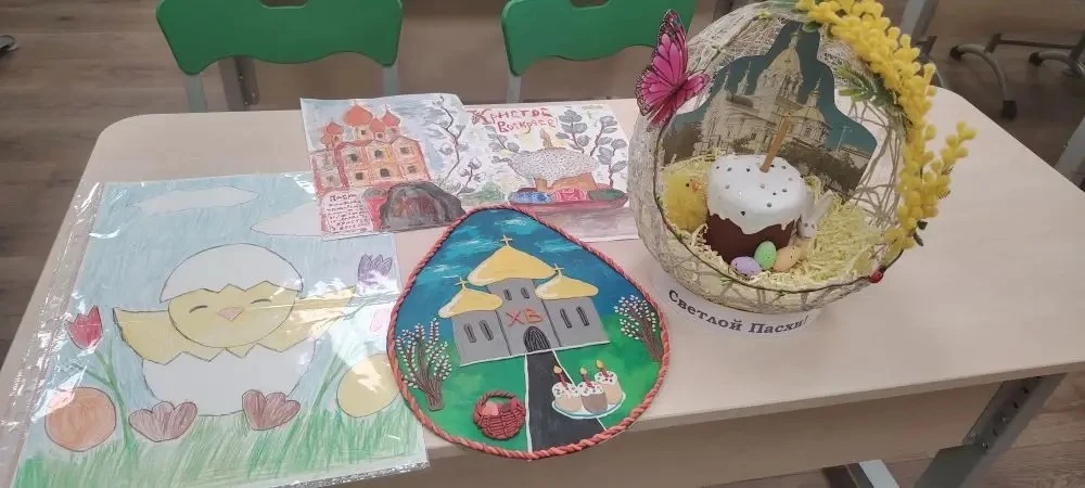 🎨 Дети вместе с классными руководителями и родителями готовились к этому событию с большой душой. На выставке были представлены тематические рисунки акварелью, гуашью и карандашами, а также невероятные поделки: пушистые вербочки, расписные яйца в разных техниках, уютные гнёздышки с птицами, куличи из солёного теста и забавные кролики из ткани и бумаги.