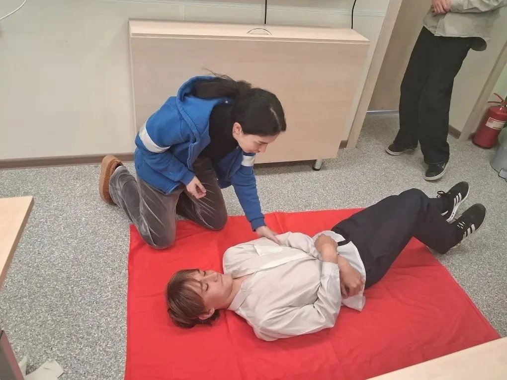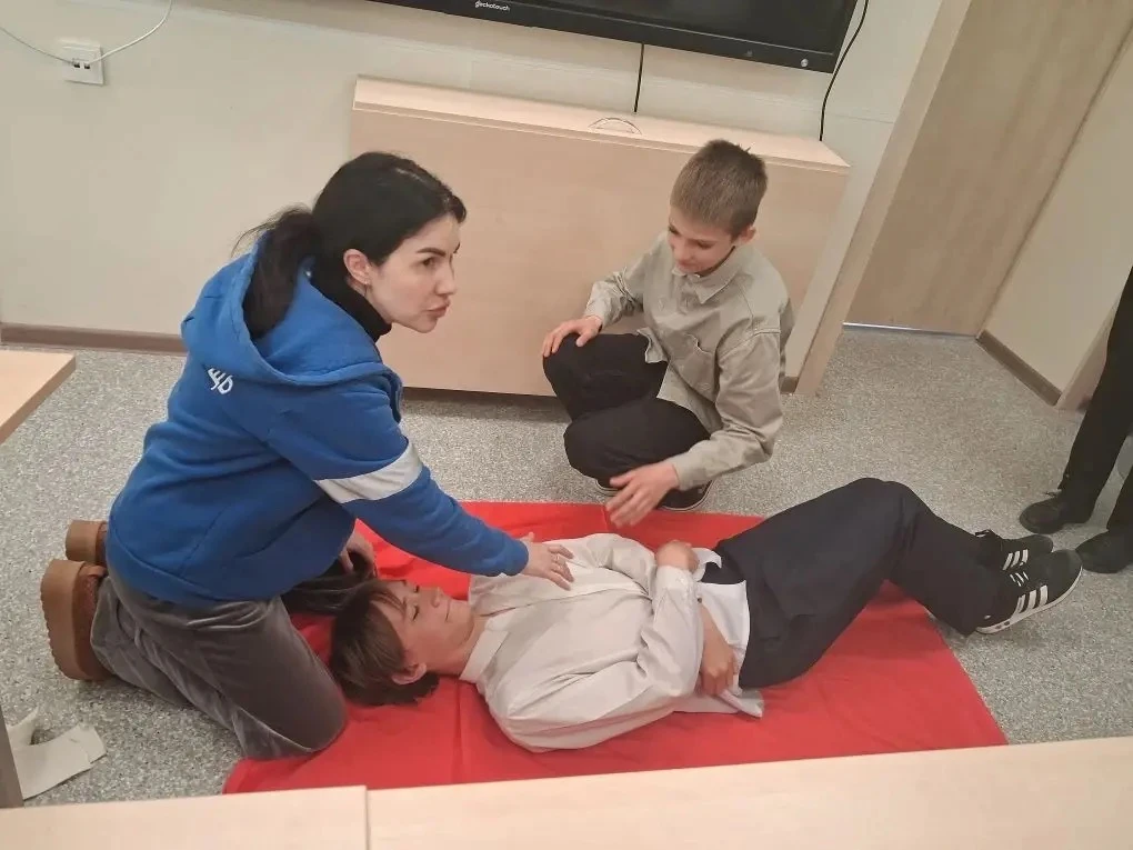 Элла Игоревна Павлович — студентка Университета фундаментальной медицины и фельдшер скорой помощи — провела для ребят лекцию «Основы неотложной помощи при жизнеугрожающих состояниях».