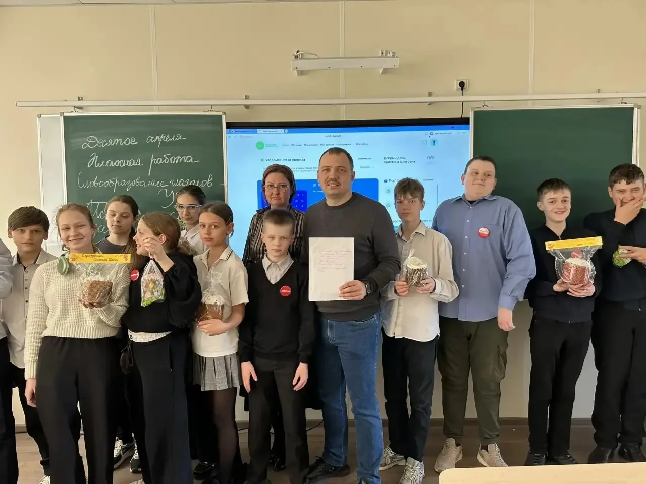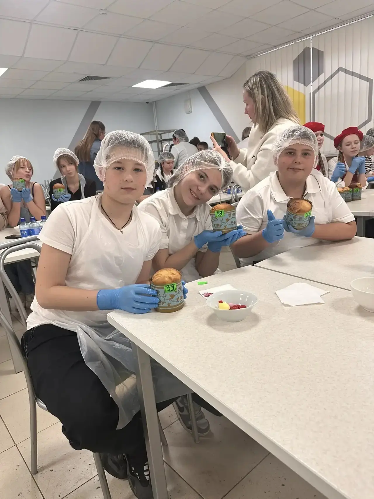 🧑🍳👩🍳👨🍳Ученики нашей школы прекрасно справились с заданием: все три кулича получились пышными и красивыми. От каждой команды по одному куличу отправилось в зону СВО. В конце мероприятия всем участникам были вручены подарки от ООО «ПЕТРАН».