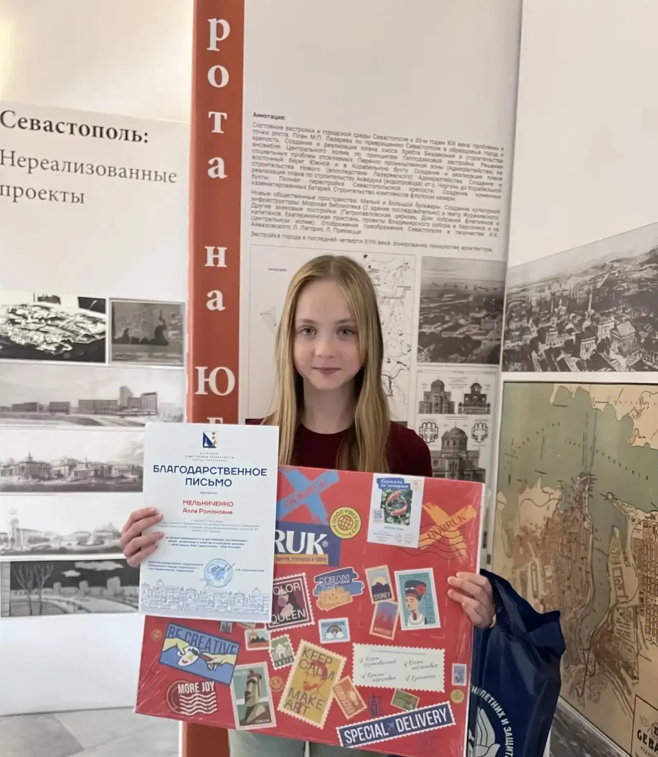 Ученица 5 В класса нашей школы Мельниченко Алла также приняла участие в конкурсе и была отмечена Благодарственным письмом Департамента общественной безопасности города Севастополя за целеустремленность в достижении поставленных целей и патриотизм.