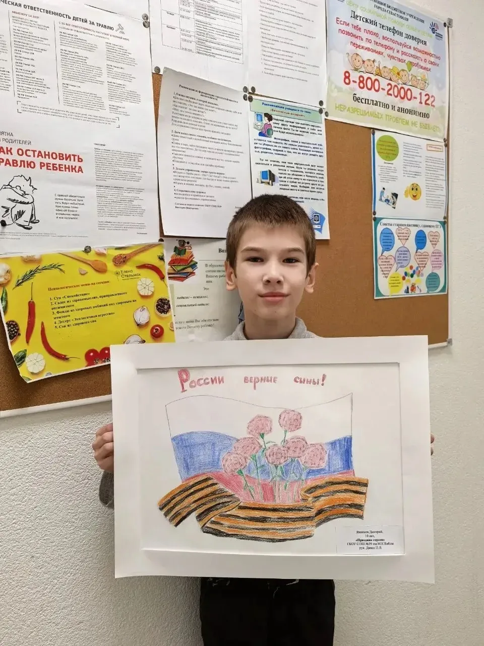 В преддверии праздника Дня защитника Отечества обучающийся 4-Б класса нашей школы Ячников Дмитрий принял участие в городском конкурсе детского рисунка "России верные сыны!"