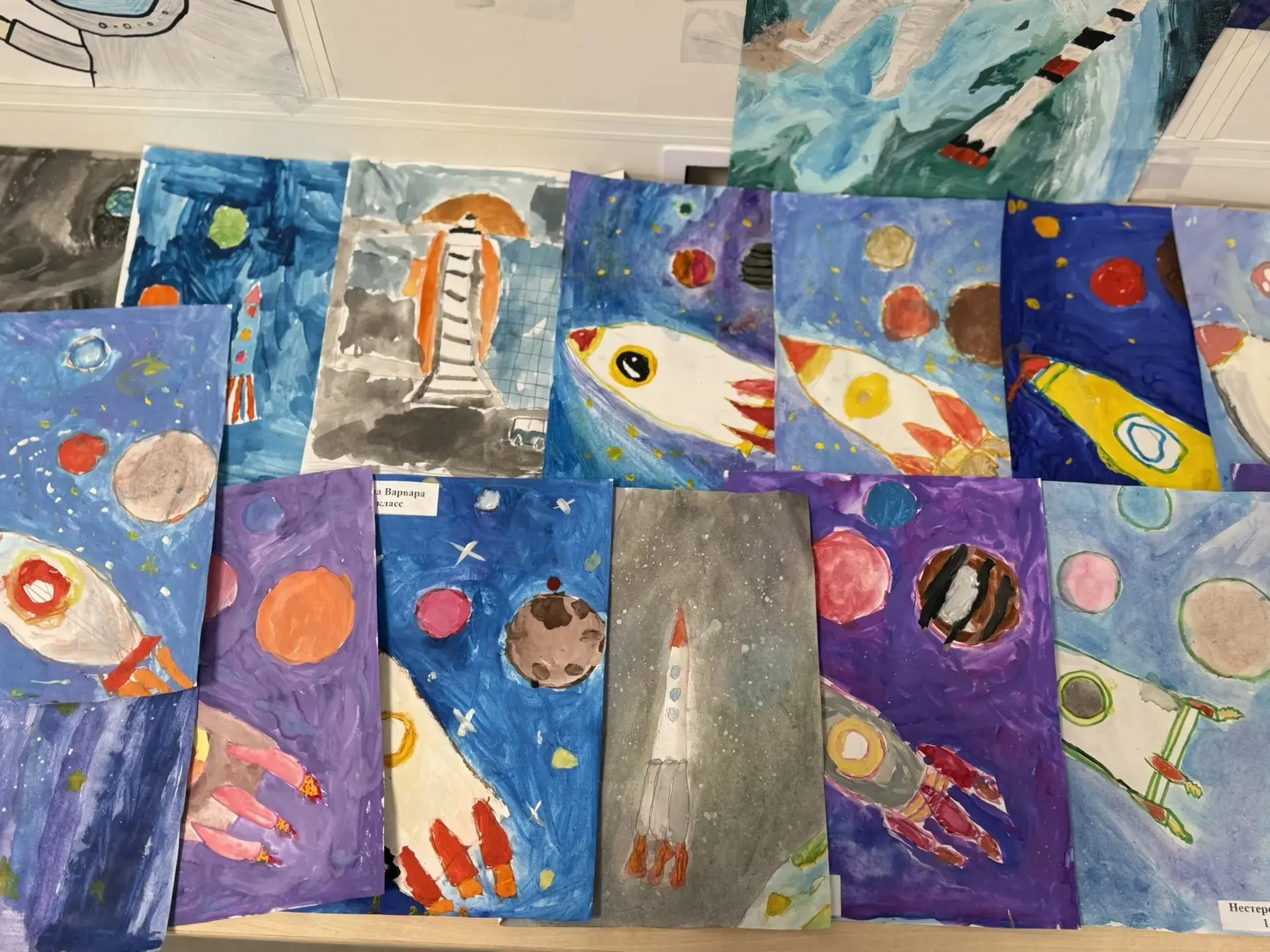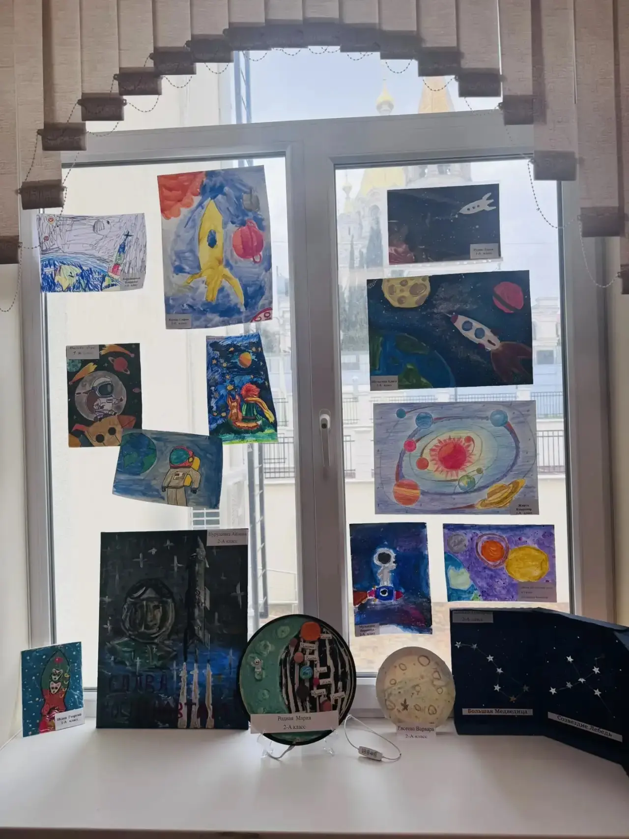 В нашей школе царит необычная атмосфера — на первом и втором этажах разместилась выставка поделок и рисунков, посвящённых Дню космонавтики. Юные художники и мастера из 1–4 классов представили свои работы, наполненные фантазией и любовью к звёздам.