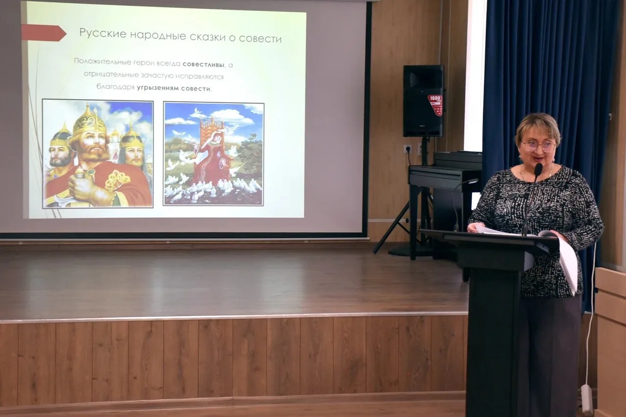 На мероприятии говорили о совести как главном герое русской литературы. Провела мероприятие Дунаева О.А., методист ЦНППМ ГАОУ ПО ИРО, учитель русского языка и литературы ГБОУ СОШ № 39 им. М.К. Байды.