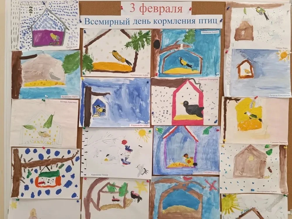 Ученики 1-В класса активно включились в празднование Всемирного дня кормления птиц. На уроке рисования ребята познакомились с видами птиц, обитающих в нашем городе Севастополе, обсудили особенности их жизни зимой и важность заботы о пернатых друзьях в холодное время года.