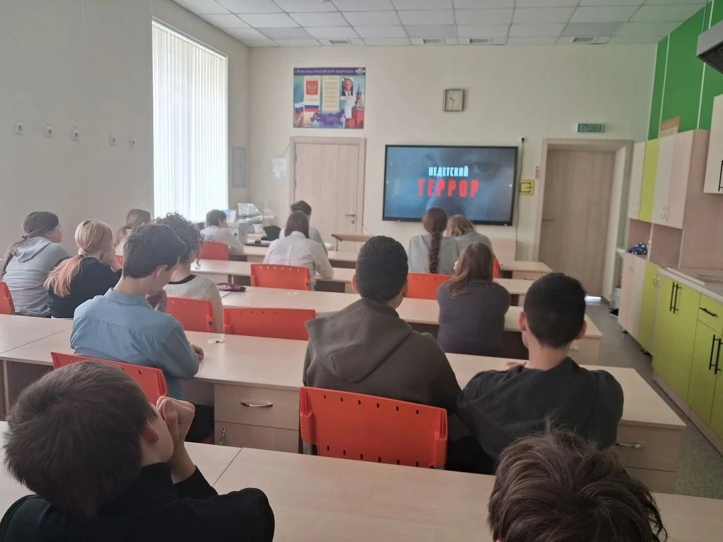 В рамках профилактической работы по противодействию экстремизму и терроризму обучающиеся 7‑х классов просмотрели документальный фильм «Недетский террор». Картина наглядно показала, как злоумышленники вовлекают несовершеннолетних в противоправную деятельность.