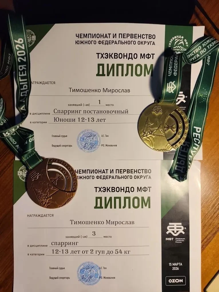 Поздравляем нашего ученика Тимошенко Мирослава за 1 место в постановочном спарринге и за 3 место в спарринге на чемпионате!