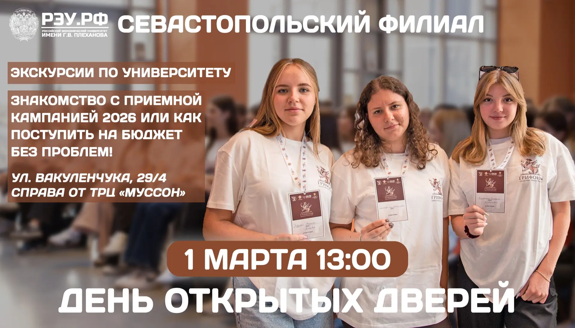 Севастопольский филиал РЭУ им. Г.В. Плеханова приглашает на день открытых дверей 🥳