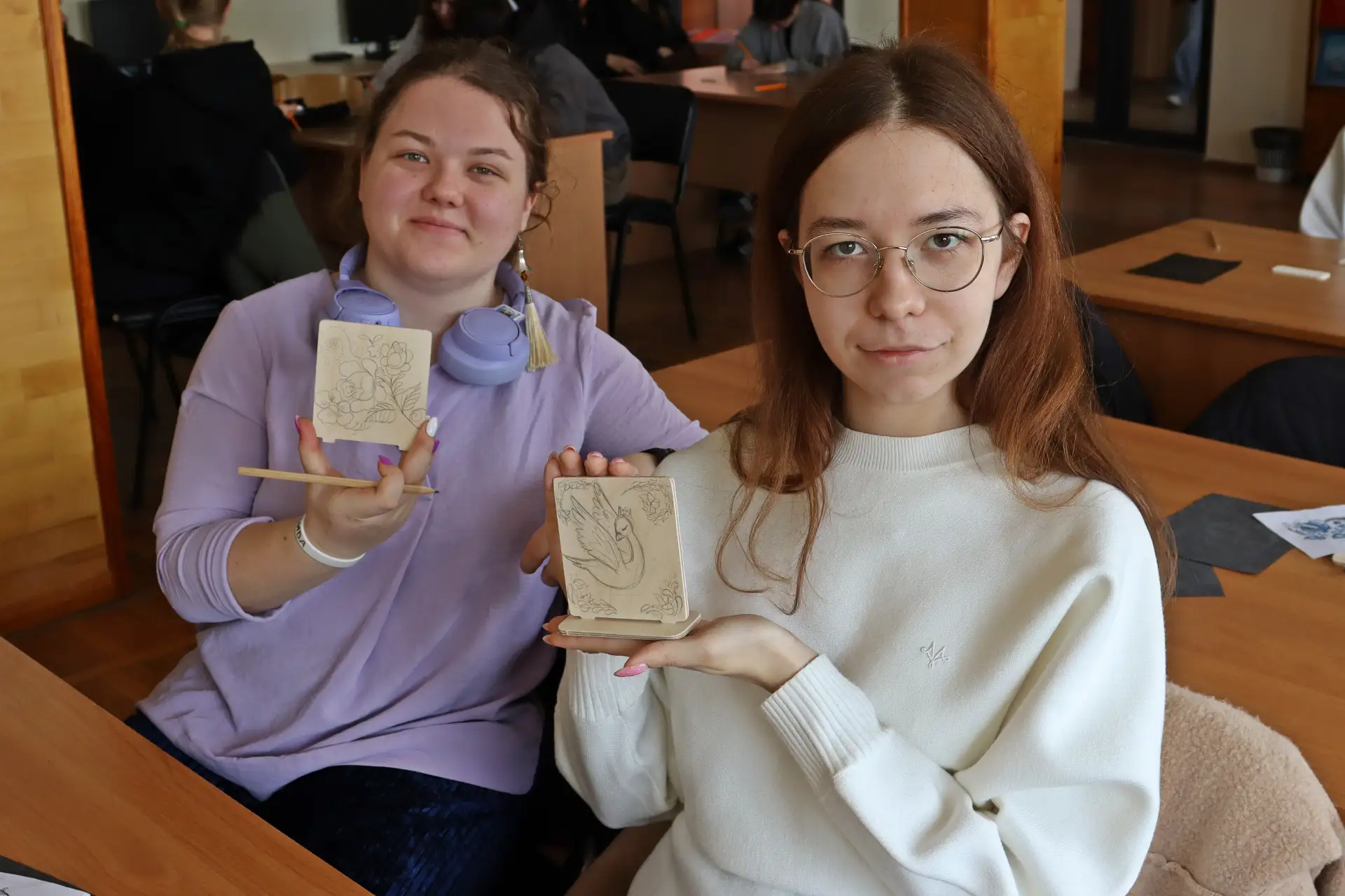 ✔️ Осваивали технику выжигания по дереву под чутким руководством Ольги Глазуновой и Дарьи Лагоды. Участники: