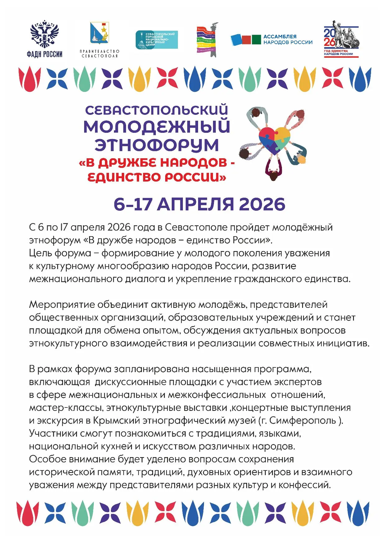 10 апреля 2026 года в Севастопольском архитектурно-строительном техникуме состоялся Молодежный этнофорум, посвящённый культуре и традициям белорусского народа. Это событие стало настоящим праздником для студентов и гостей, где каждый смог погрузиться в атмосферу белорусского наследия.