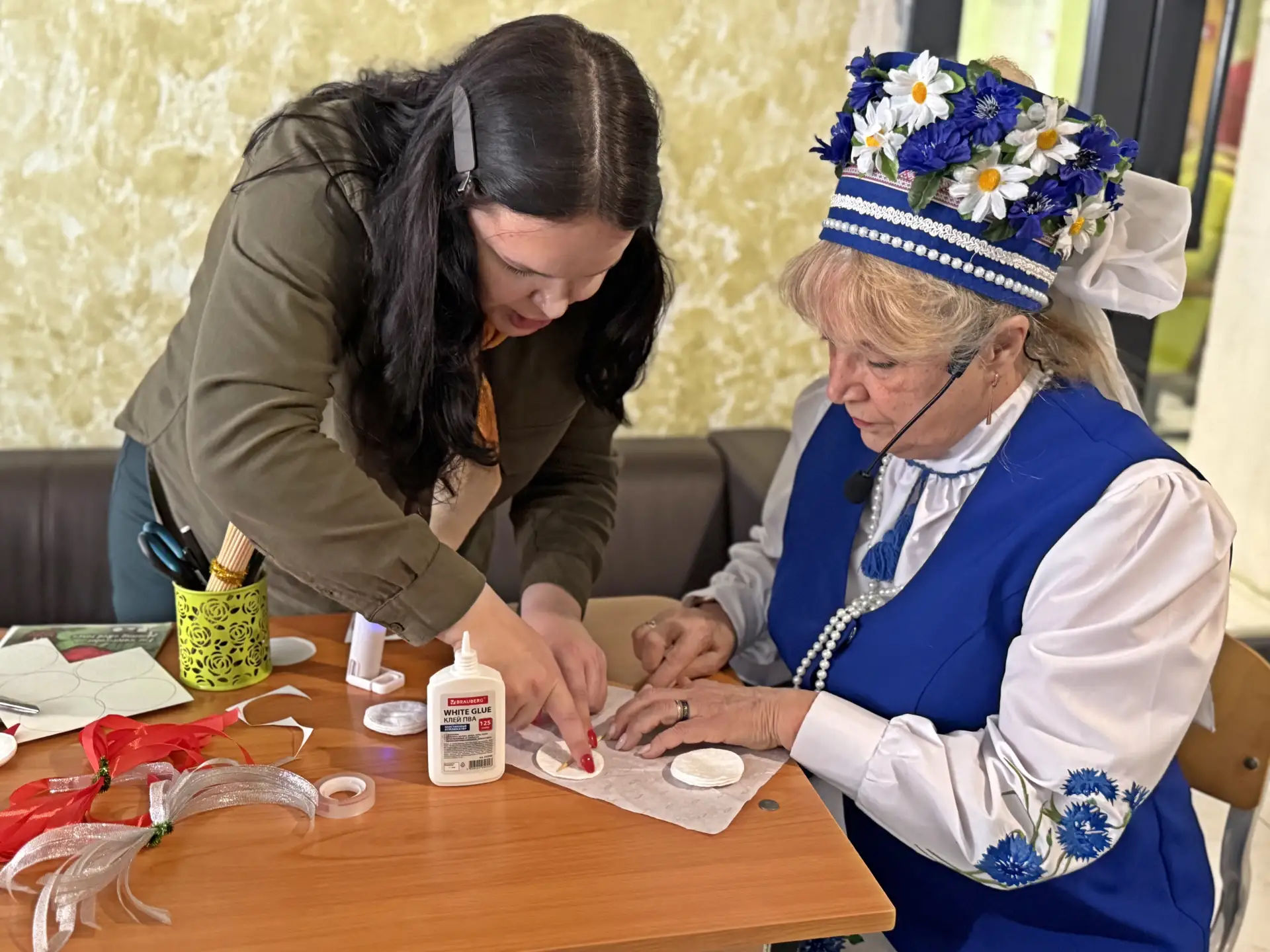 ✔️ Мастерили фигурку священной птицы Бусла — символа семейного счастья и миролюбия. Этот мастер‑класс провёл советник директора по воспитанию: участники узнали, почему именно эта птица почиталась в народных традициях и какое значение она имела для семьи.🕊️