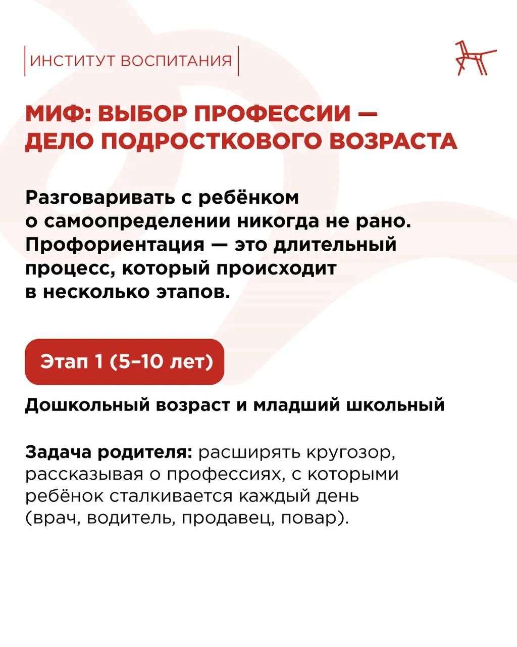 🤯 Выбор профессии — это путь, который лучше начинать с раннего детства. Начать предлагаем с наших карточек и марафона профориентации. (https://vkvideo.ru/playlist/-113551114_87) В них вы найдёте полезную информацию и узнаете: