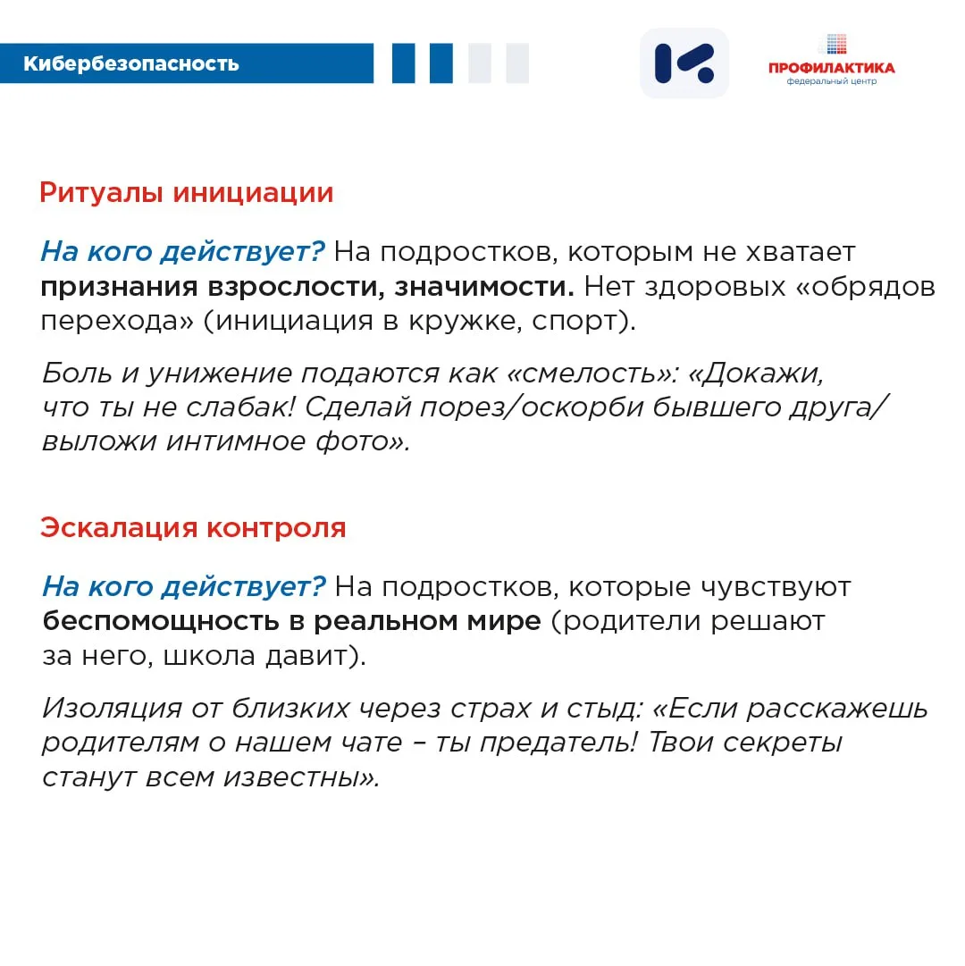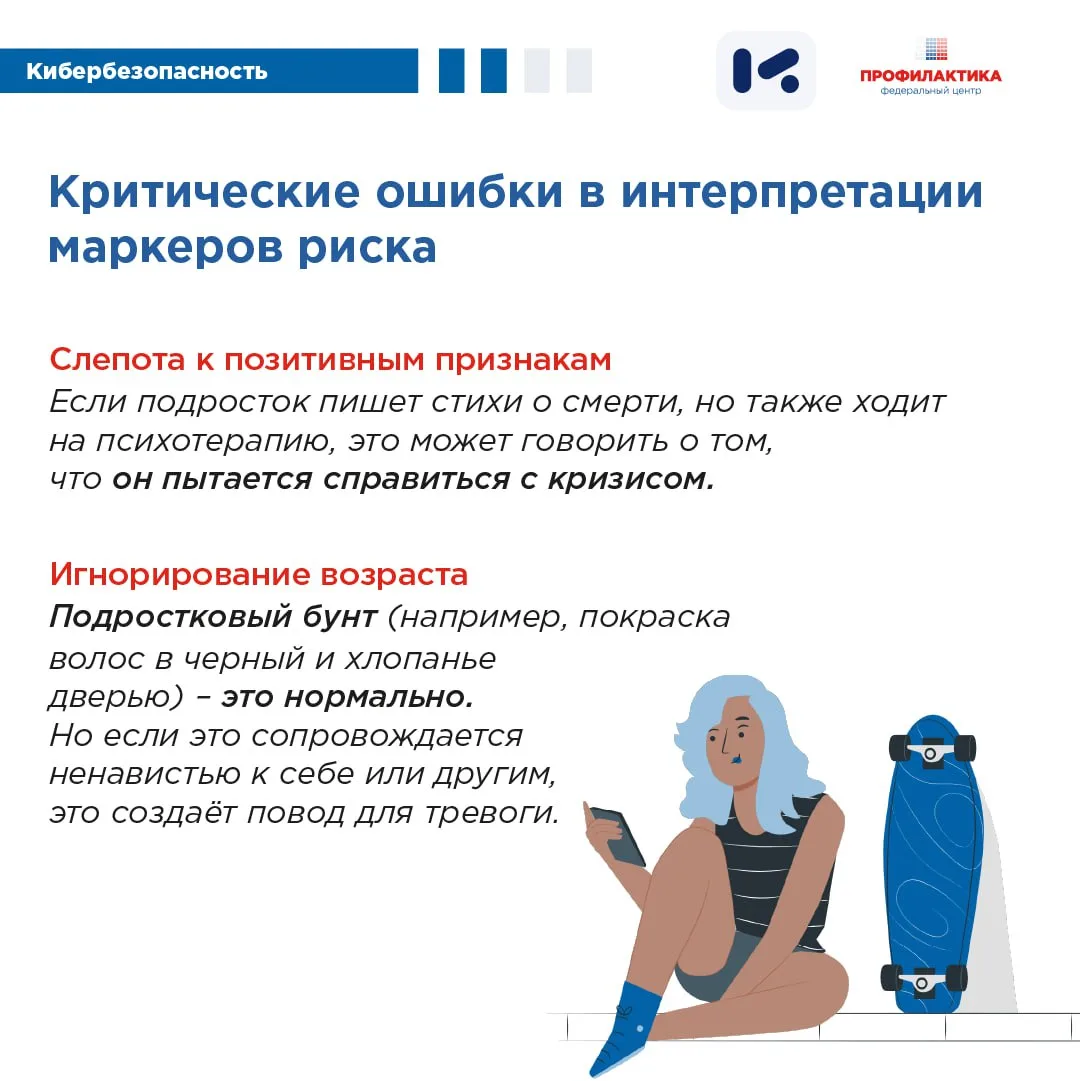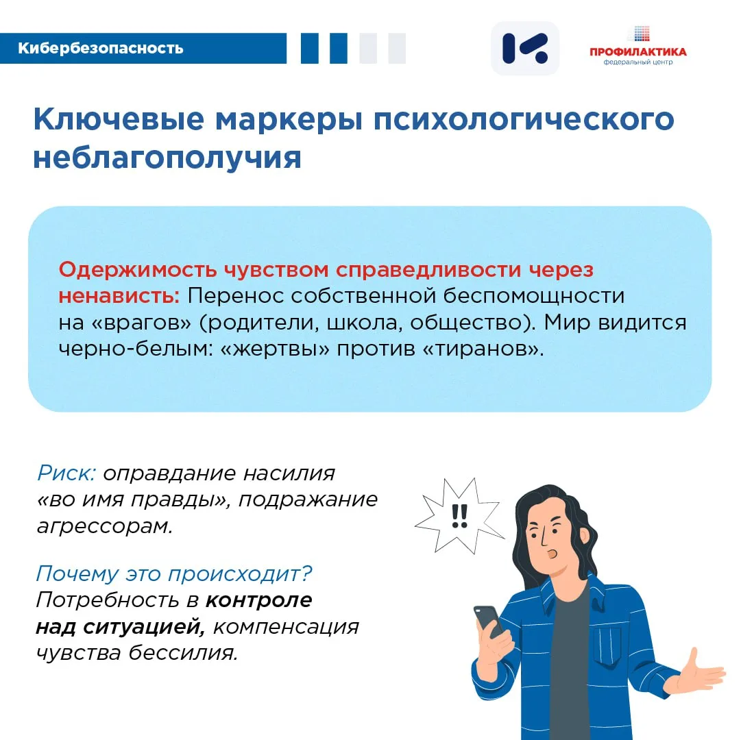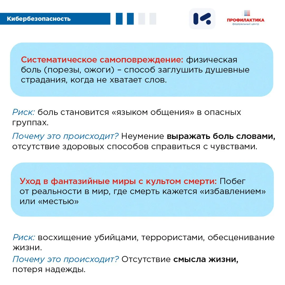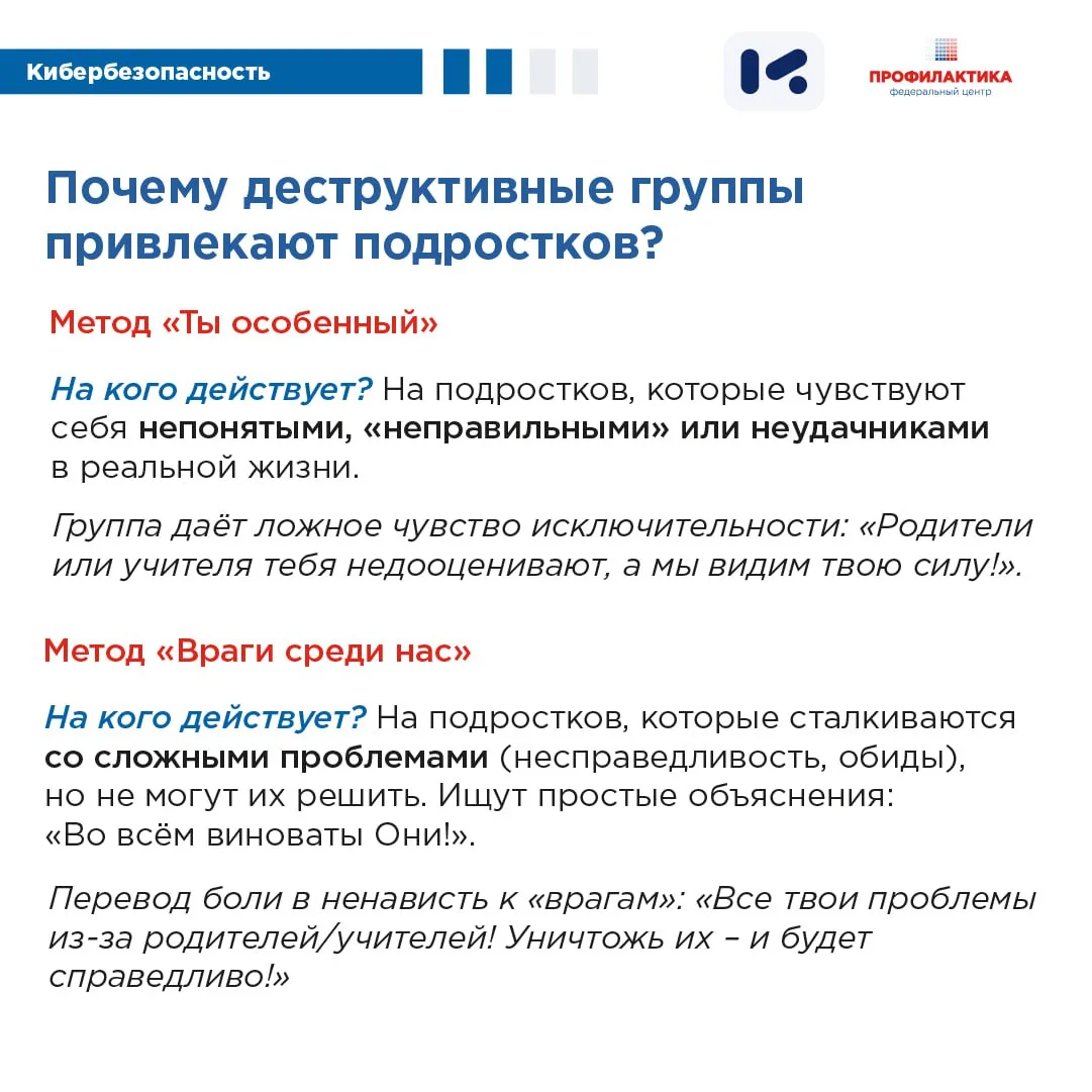 Подробнее о маркерах, которые могут свидетельствовать о психологическом неблагополучии подростка и о методах, которые используются для вовлечения, читайте в карточках, разработанных по материалам АНО «ЦИСМ». (https://cism-ms.ru/) ⤴️