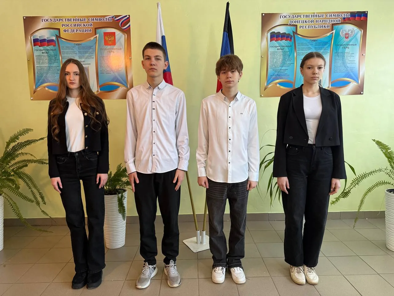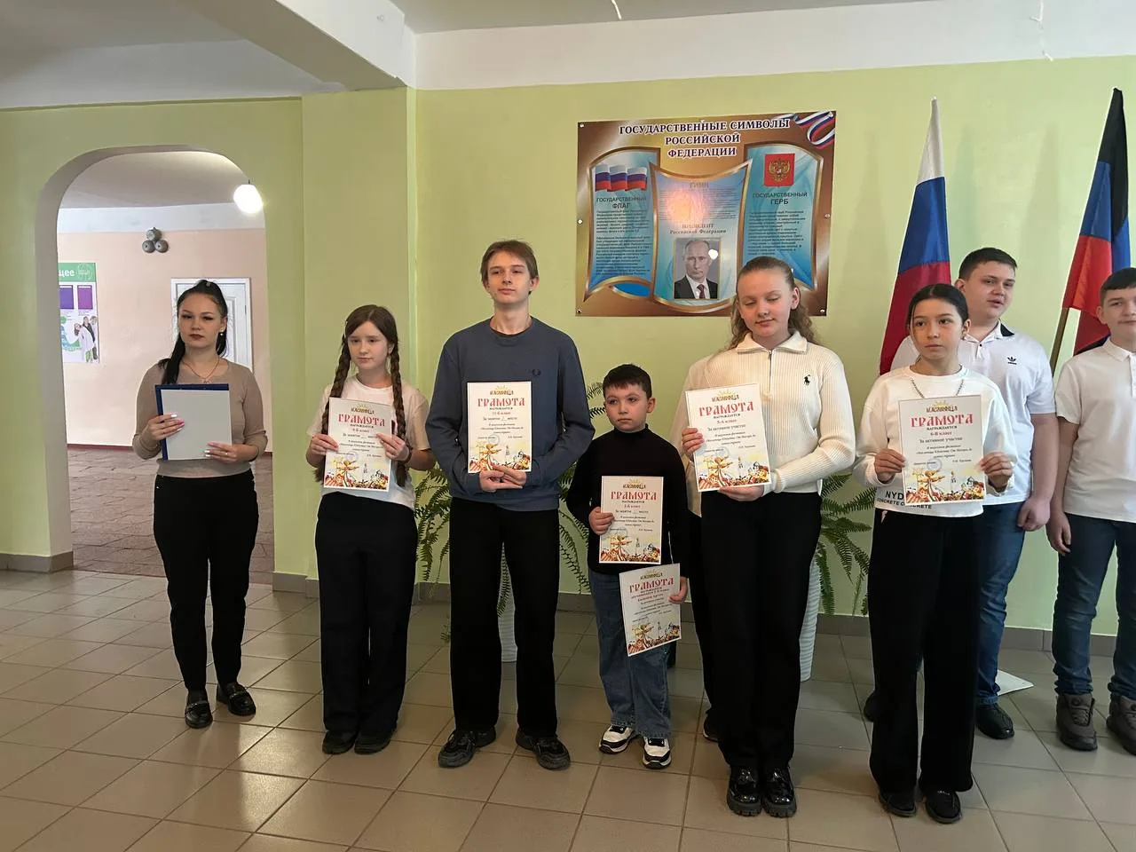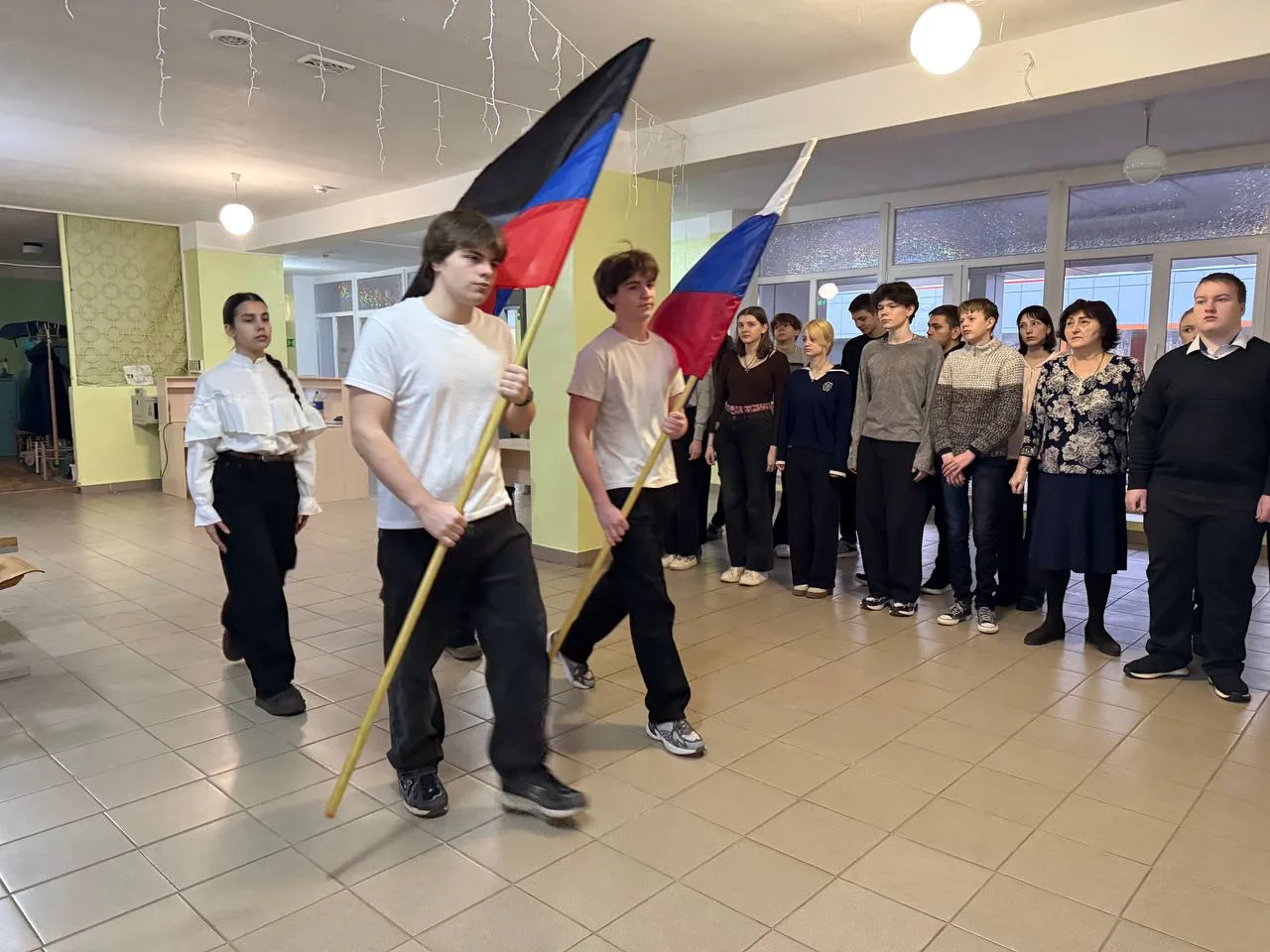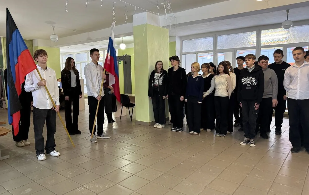 16 февраля в ГБОУ «Средняя школа №19 Шахтерского муниципального округа» состоялась традиционная еженедельная линейка с выносом флагов Российской Федерации и Донецкой Народной Республики.