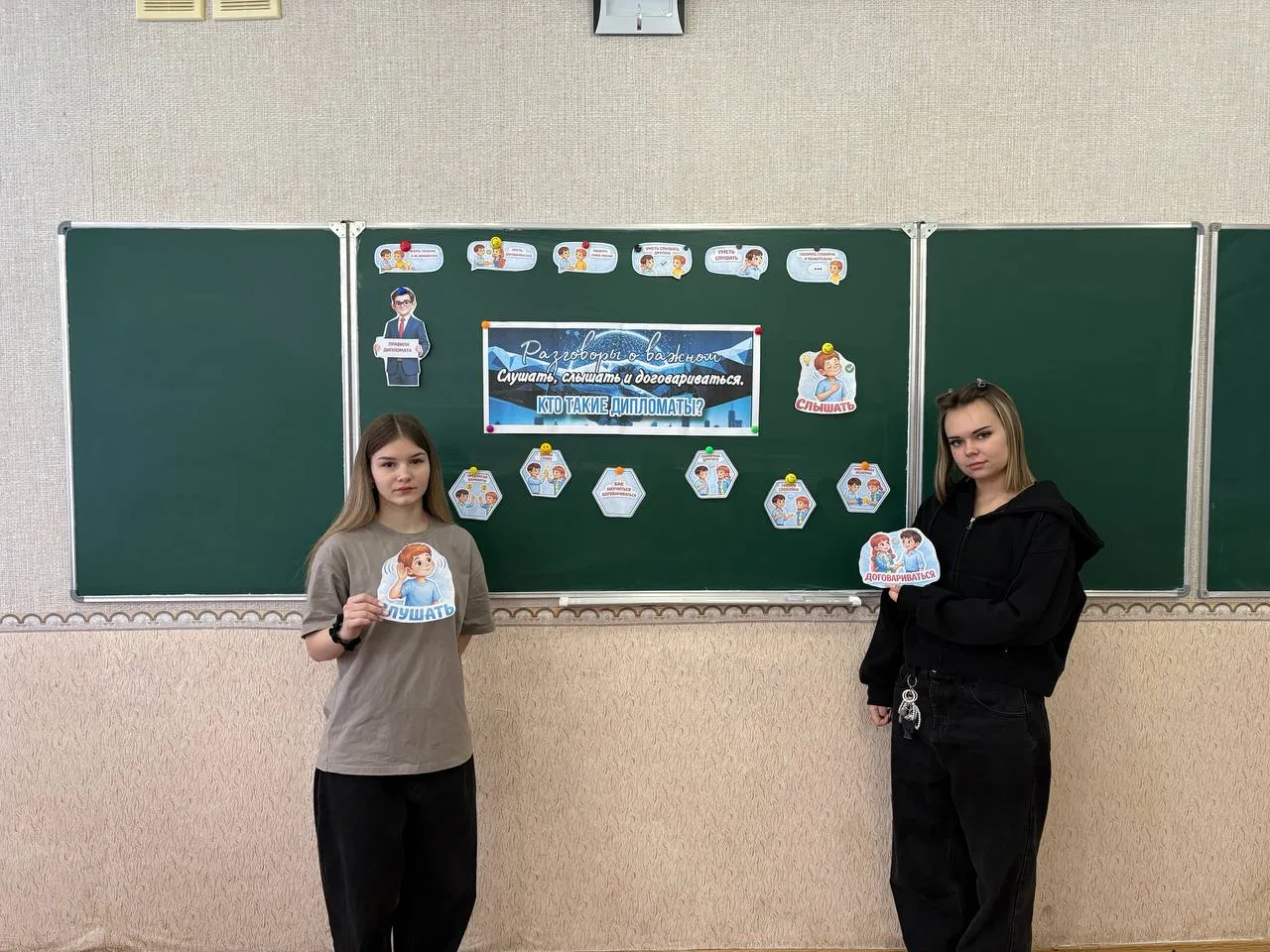 9 февраля в ГБОУ «Средняя школа №19 Шахтерского муниципального образования» состоялось занятие из цикла «Разговоры о важном». Тема урока — «Слушать, слышать и договариваться. Кто такие дипломаты?» — объединила учащихся разных классов для обсуждения важности коммуникативных навыков в повседневной жизни.