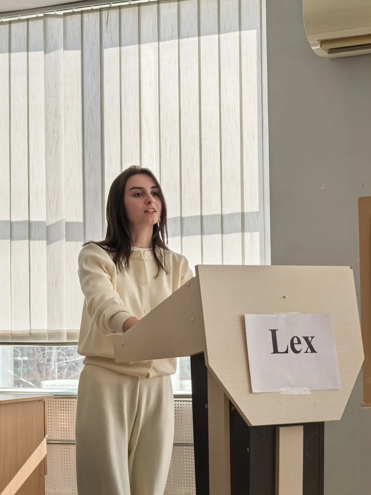 приветствуя команды, отметила значимость академической дискуссии как формы развития профессионального мышления будущих юристов и филологов, а умение аргументированно отстаивать позицию и уважительно вести полемику является неотъемлемой частью правовой культуры.