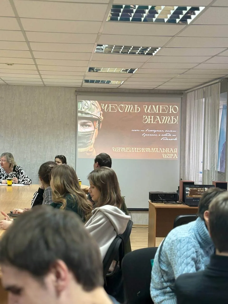 📆 18 февраля на учётно-финансовом факультете провели интеллектуальную игру «Честь имею знать», посвящённую Дню защитника Отечества. Игру организовал Интеллектуальный клуб студентов и Профсоюзное бюро факультета.