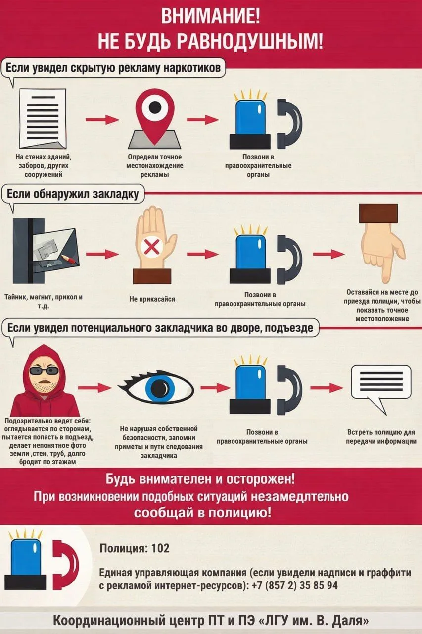 Если вам стало известно о фактах распространения или употребления наркотических средств, незамедлительно сообщите об этом в полицию.