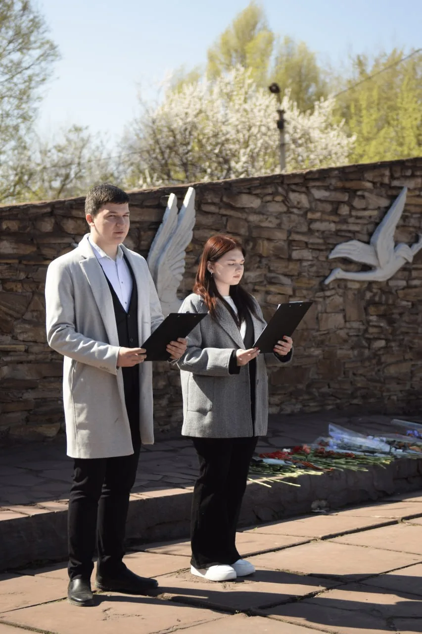 ▪️Акция состоялась 17 апреля на площади К. Маркса у памятника «Братская могила жертв фашизма». Мероприятие было приурочено ко Дню памяти жертв геноцида советского народа, совершённого нацистами и их пособниками в период Великой Отечественной войны 1941–1945 годов. Акция направлена на гражданско-патриотическое воспитание молодёжи и сохранение исторической памяти о подвиге советского народа.