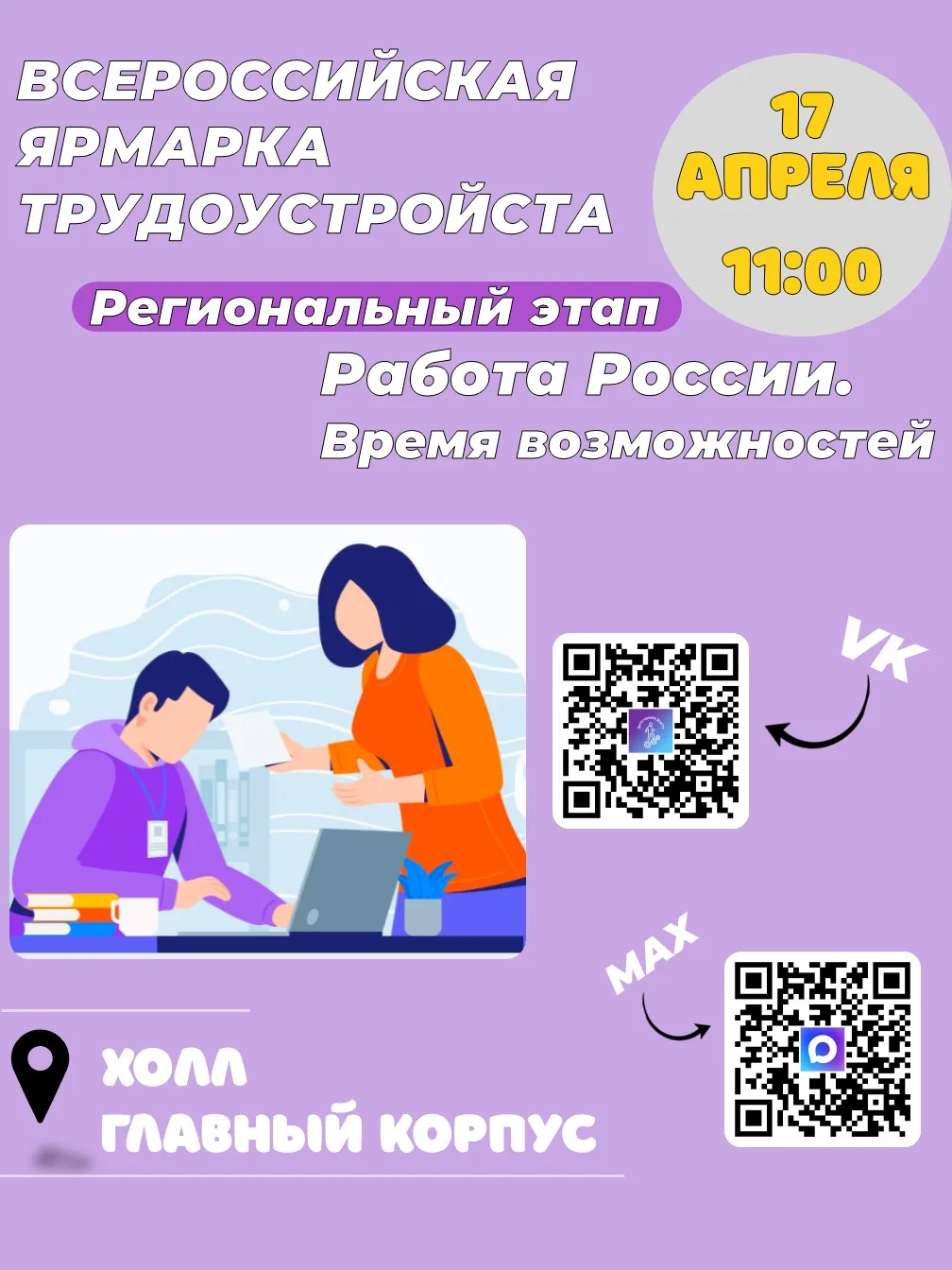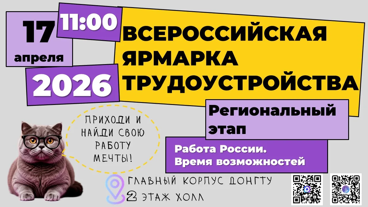 💜 Всероссийская ярмарка трудоустройства «Работа России. Время возможностей» уже сегодня в ДонГТУ!