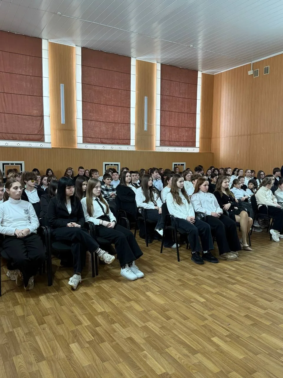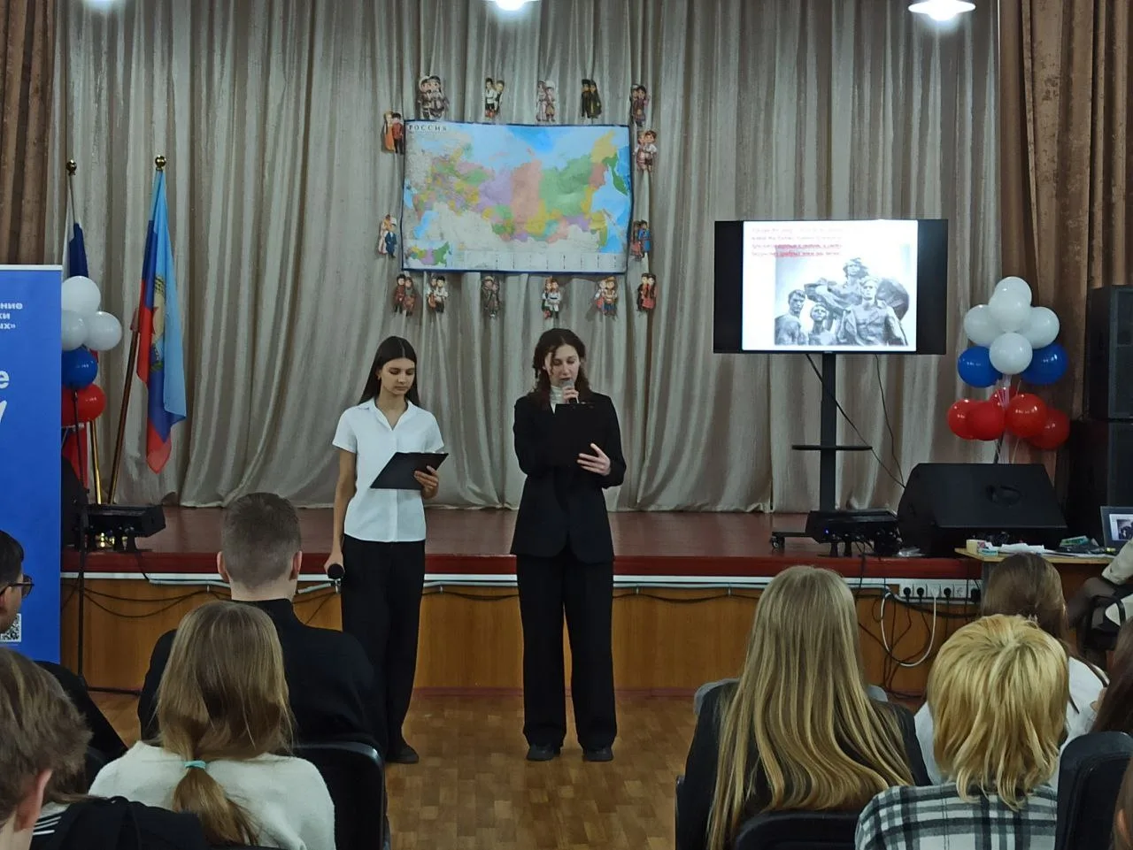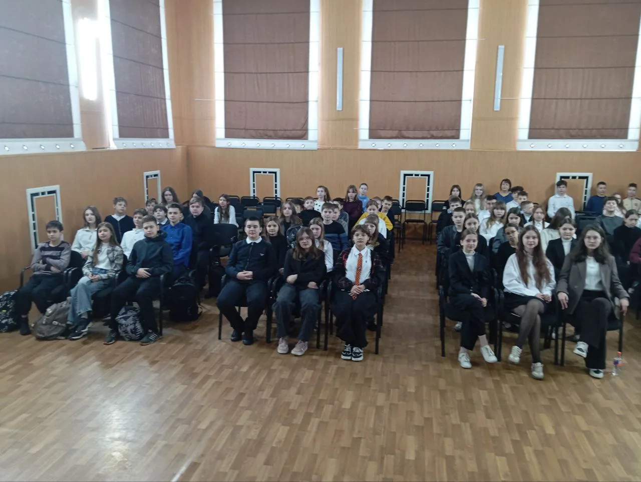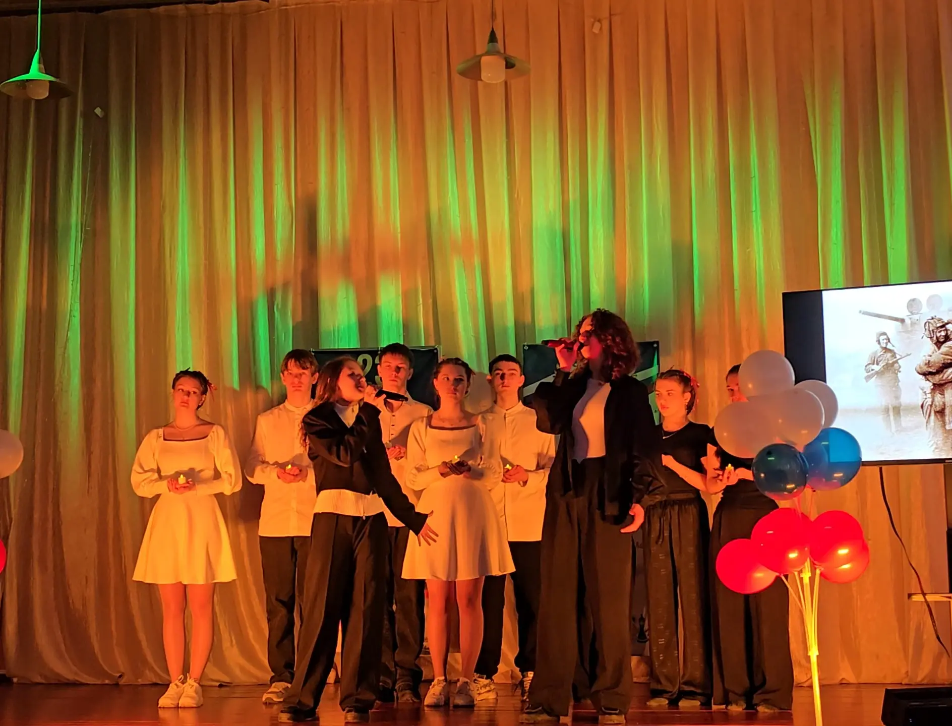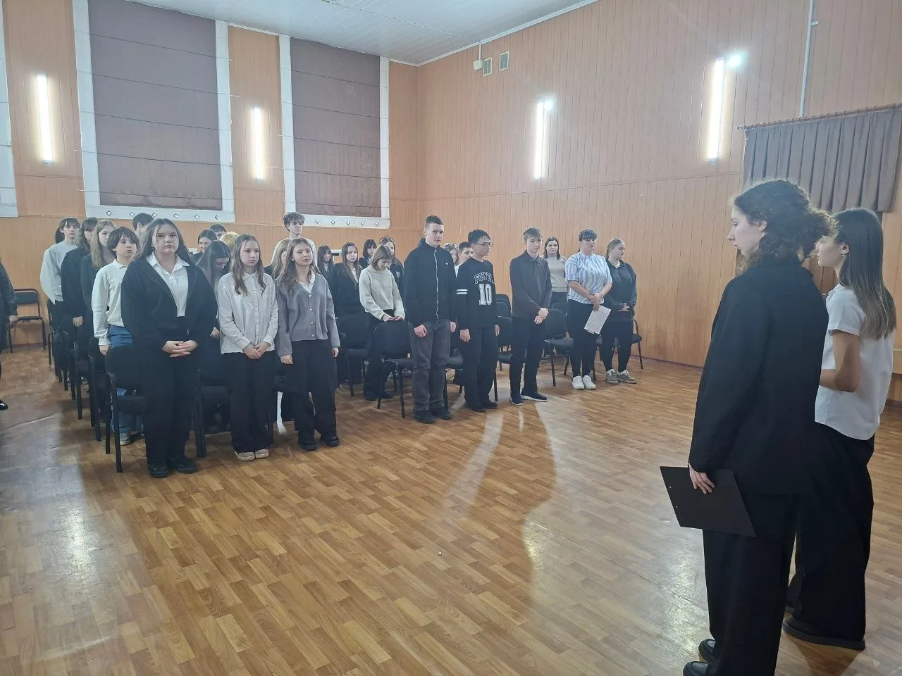 Не менее впечатляющим стало выступление восьмиклассниц, которые исполнили песню, пронизанную болью и надеждой. Их голоса звучали искренне и проникновенно, вызывая мурашки по коже и слезы на глазах.