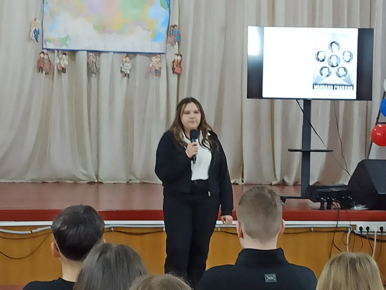 Мероприятие началось с торжественного открытия. Ученики ( Череповская Лиза,Гуменюк Вика,Фокина София, Цуканова Лера,Тримасова Екатерина и Клепикова София )подготовили выступления, рассказывающие о деятельности «Молодой гвардии»: презентации и художественное чтение стихотворений.