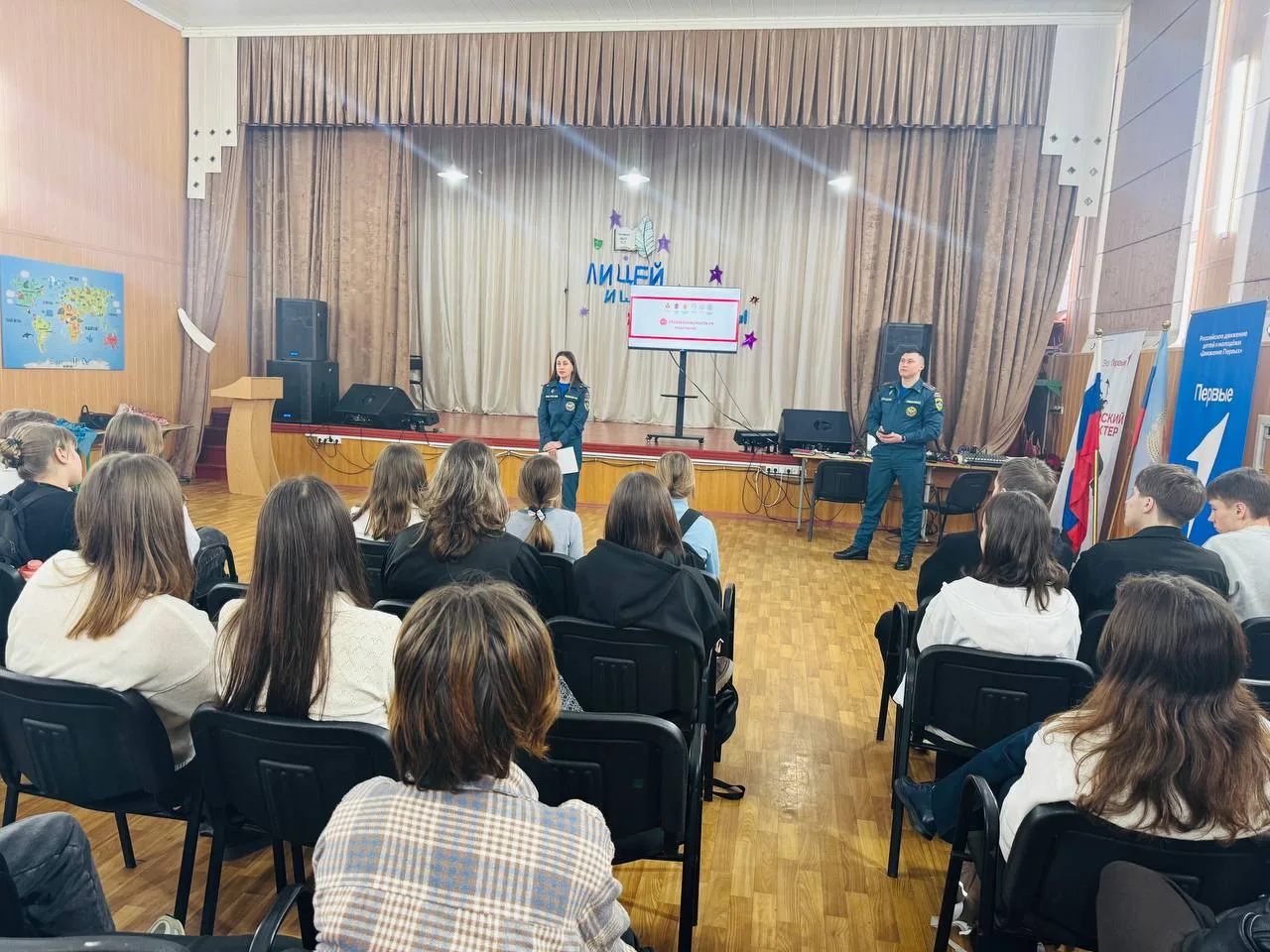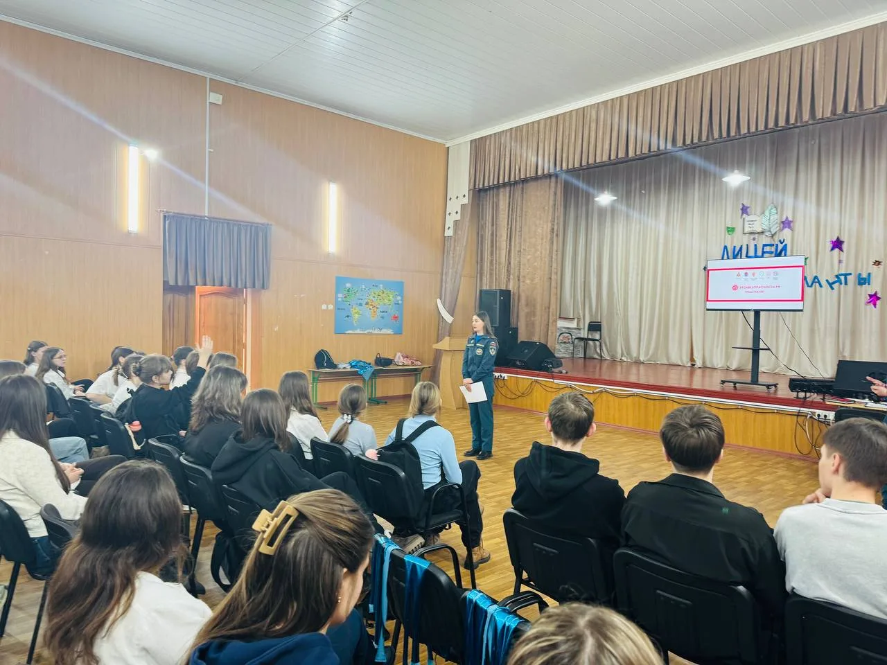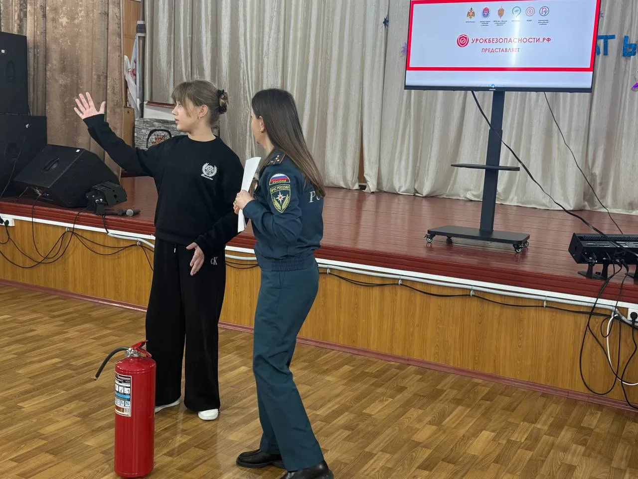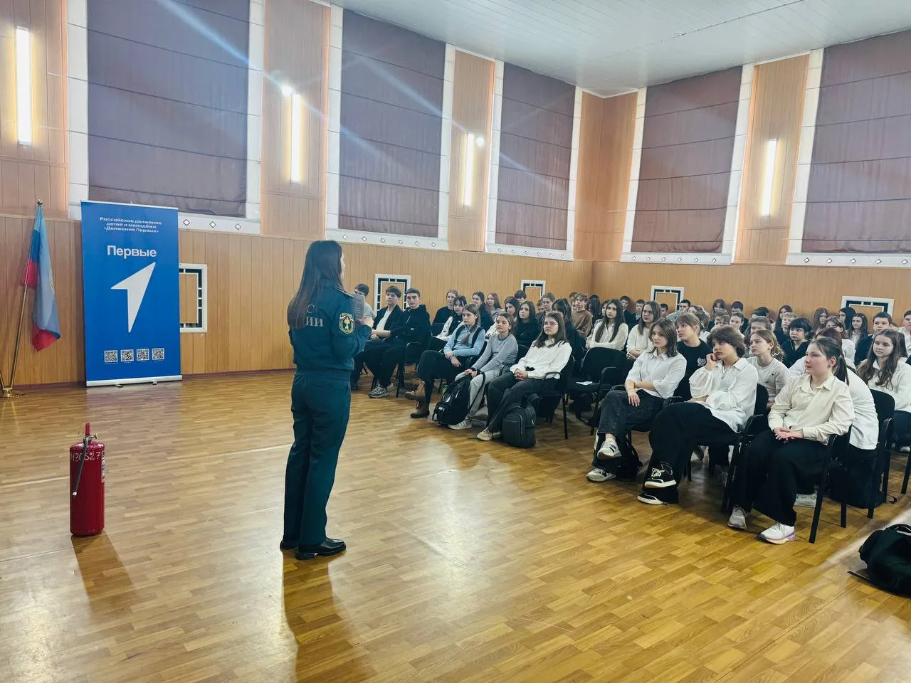В рамках реализации программы по формированию культуры безопасности в школе был проведён открытый урок безопасности с участием сотрудников МЧС.