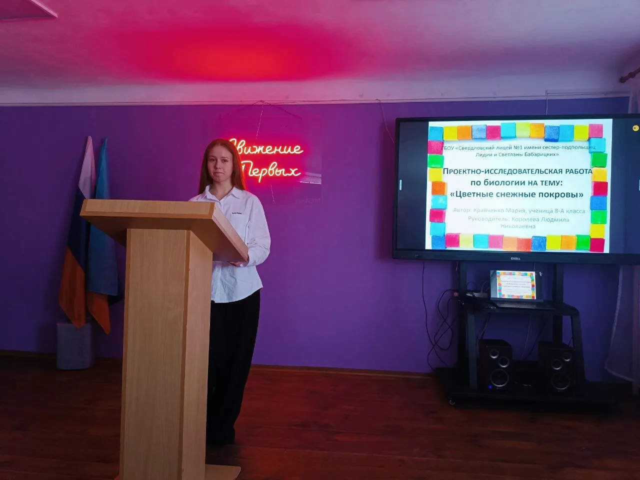 ✅III место: Кравченко Мария, обучающаяся 8-А класса, представив работу "Цветные снежные покровы" (руководитель – Королева Людмила Николаевна, учитель биологии).