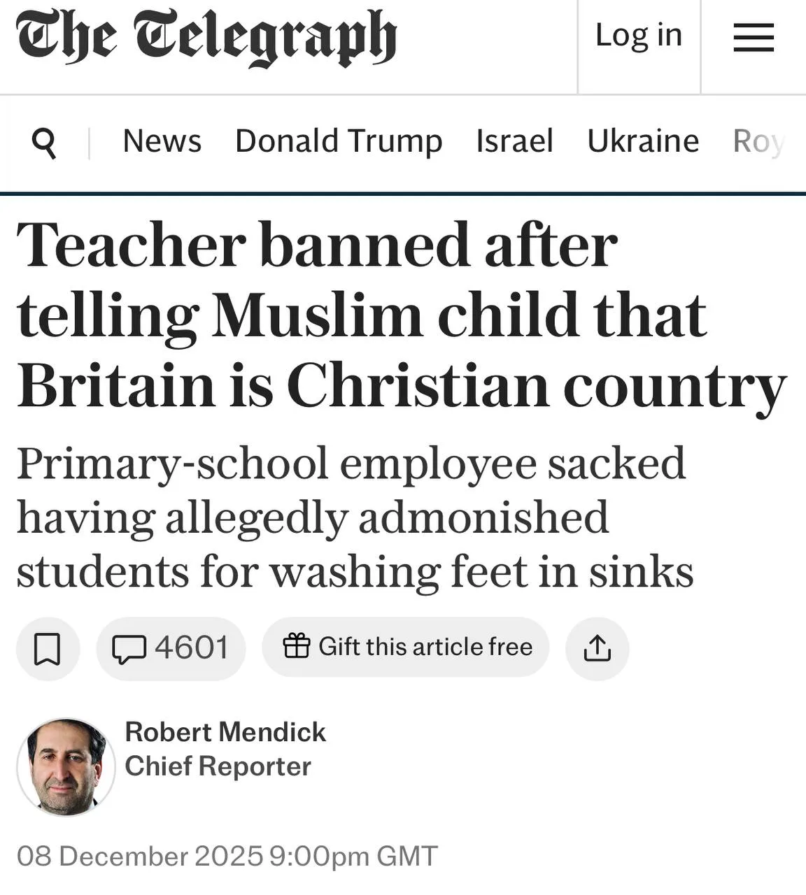 💬 По данным The Telegraph, фраза, сказанная ученику-мусульманину, о том что Британия "всё ещё христианская страна" привела к обращению в службу защиты детей и полицейской проверке.