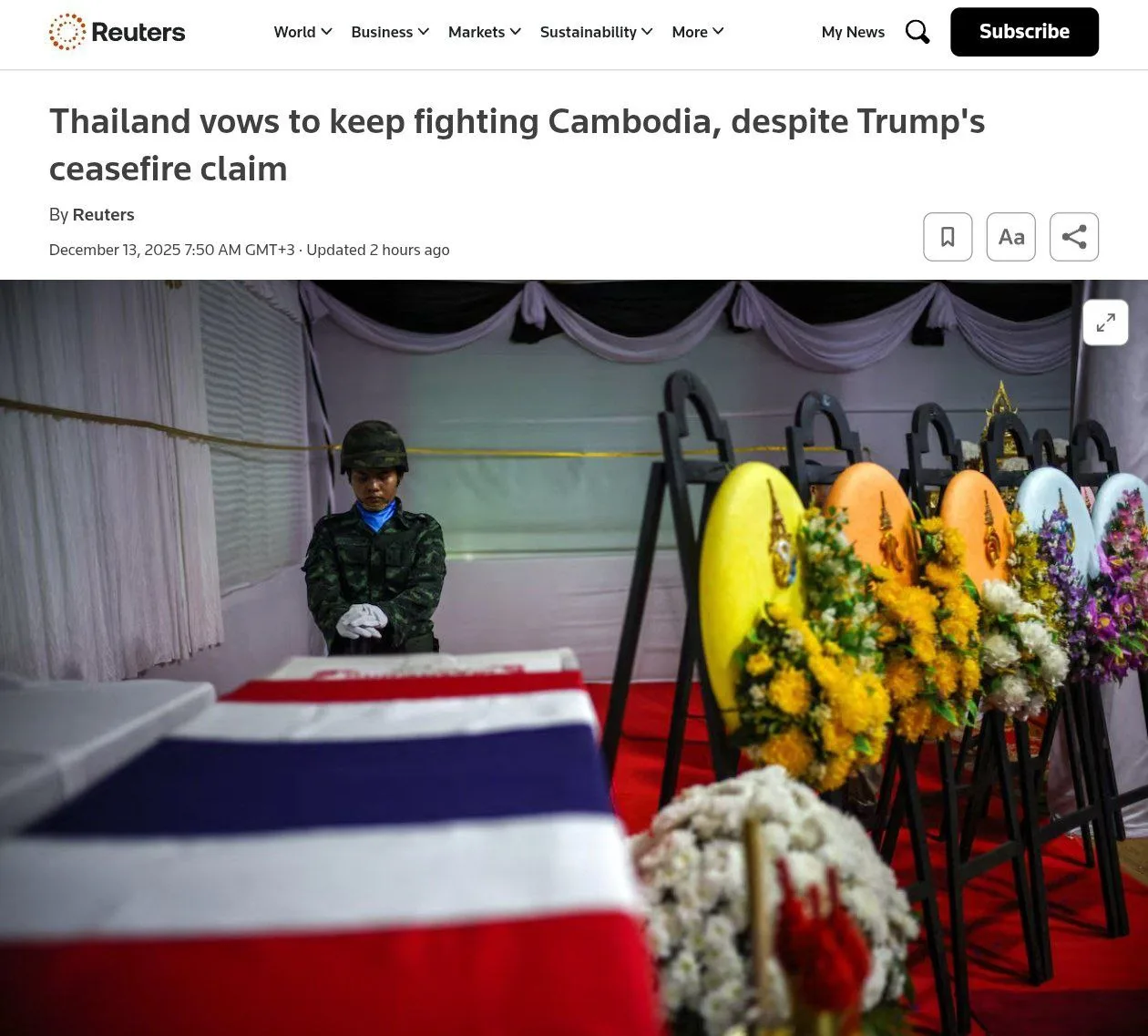 💬 Премьер Таиланда Чарнвиракул заявил, что военные действия на спорной границе будут продолжаться до устранения угроз безопасности. По его словам, никакого режима прекращения огня не вводилось, несмотря на заявления Трампа.