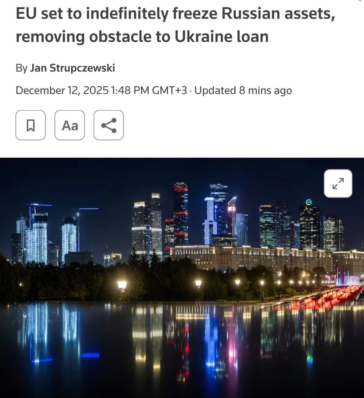 💬 Евросоюз принял решение о бессрочной заморозке около €210 млрд активов ЦБ РФ, находящихся в Европе. Это снимает необходимость продлевать меры каждые полгода и исключает риск блокировки со стороны отдельных стран ЕС. Активы останутся замороженными, пока сохраняется «угроза экономическим интересам ЕС».
