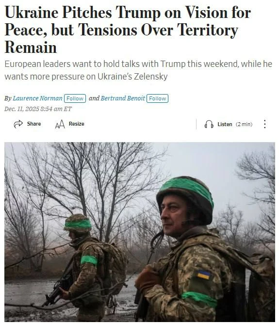 💬 По данным Wall Street Journal, президент США вчера потребовал от европейских партнёров усилить давление на Владимира Зеленского для согласия на предложенный Вашингтоном мирный план.