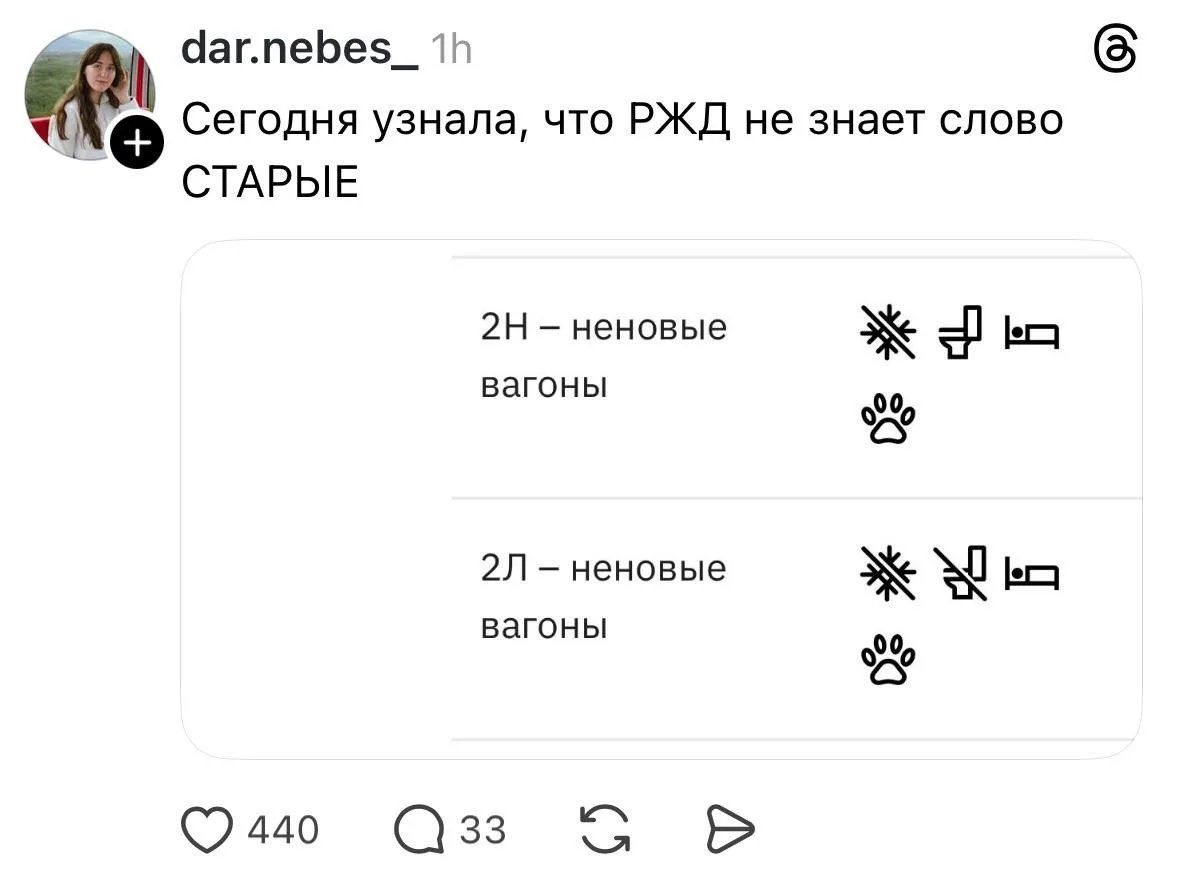 Забавно, но в поездах РЖД нет старых вагонов — только неновые 😁