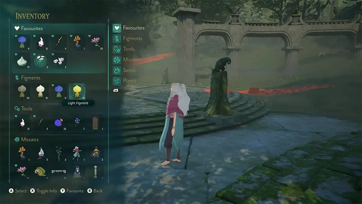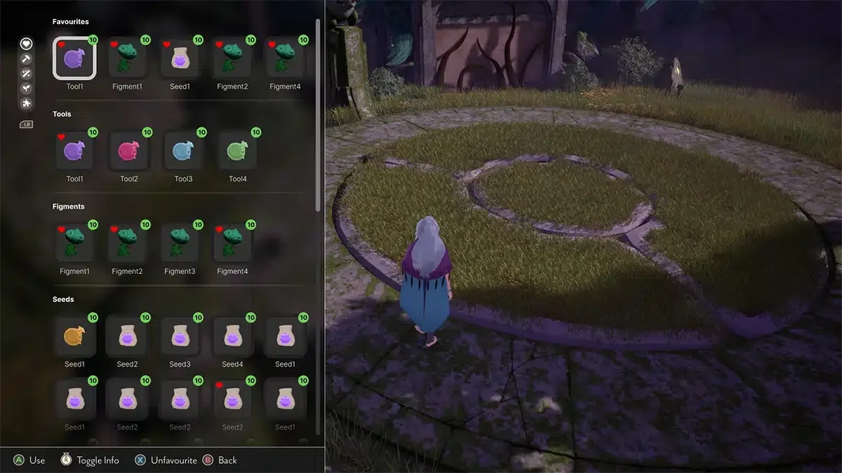 Судя по интерфейсу и игровому меню с вкладками «Инструменты», «Семена», «Растения» и «Мозаики», одной из ключевых частей игры должно было быть обустройство сада или леса. Правда, была бы Everwild симулятором жизни или совмещала в себе механики разных жанров, сказать трудно.