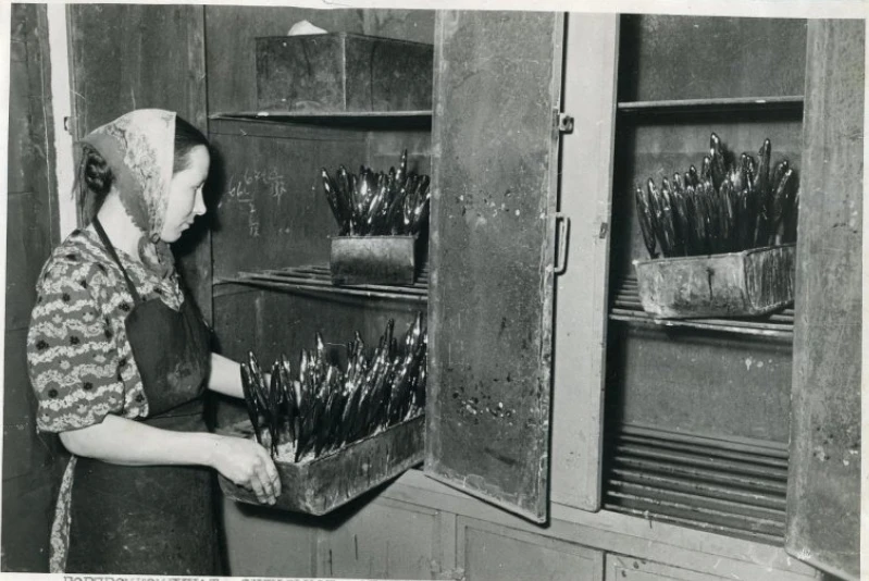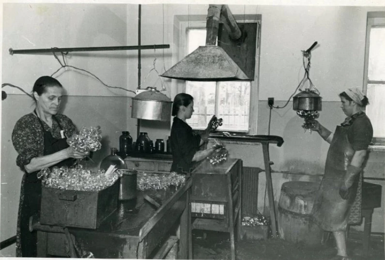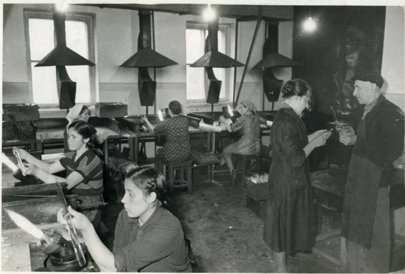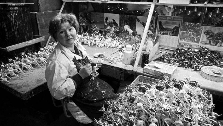 На фотографиях отделения Ижевского завода металлоизделий: стеклодувное, сушильное, серебрения и сборки. На фотографиях минимум 9 стеклодувов. Недавно прочла, что на Ёлочке их 25. Это всего лишь одно из многочисленных производств в нашей огромной стране в 1959 году. Госкаталог.РФ