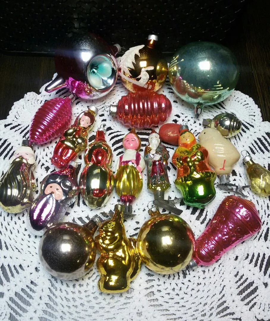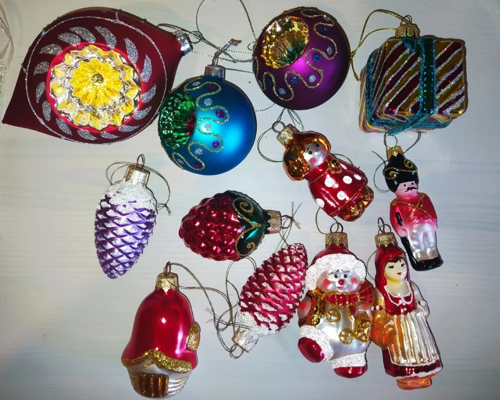 «Вспомним, как всё начиналось» Несколько лет назад я как-то незаметно переехала жить на дачу. И поняла, что мне на Новый год нужна ёлка. Ёлку купили, а вот наряжать её было нечем. В ближайшей "Пятёрочке" быстро купила всякую пластиковую дребедень. Зрелище было удручающее. 2-го января 2017-го года я рванула по магазинам в надежде на распродажах купить какие-то стеклянные игрушки. Мой улов составили несколько игрушек до 100 рублей (я тогда ещё не верила, что игрушки могут стоить дороже🤣) и шикарный набор "Щелкунчик" из 6-и игрушек от Ирены за 1990 рублей. Стало понятно, что игрушек крайне мало. И тут пришла в голову гениальная мысль - купить коробку со старыми стеклянными шариками. Продолжение следует...