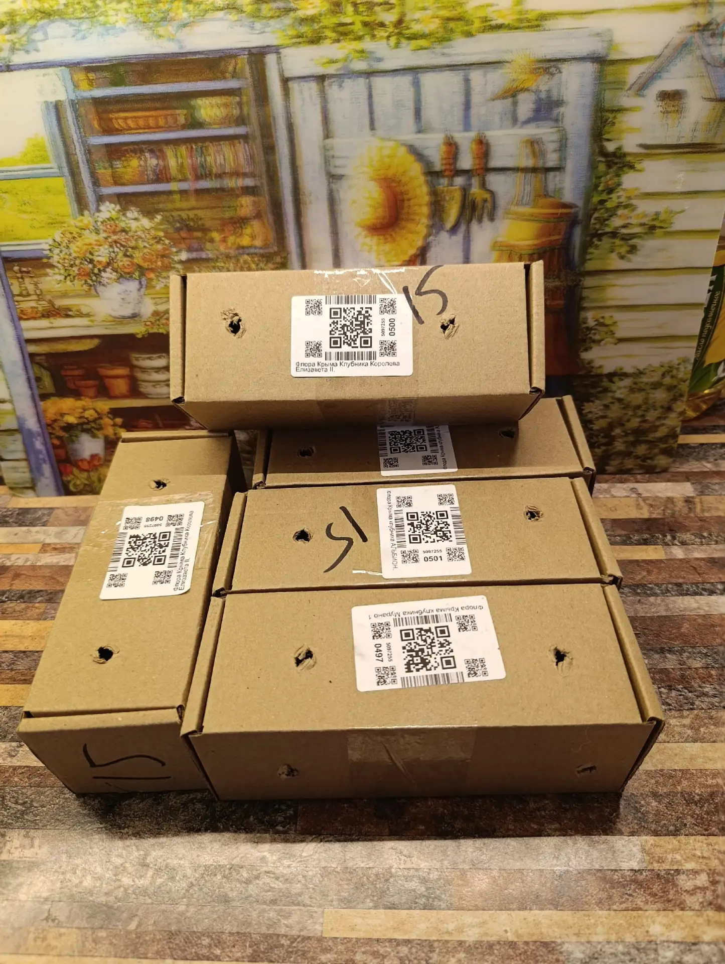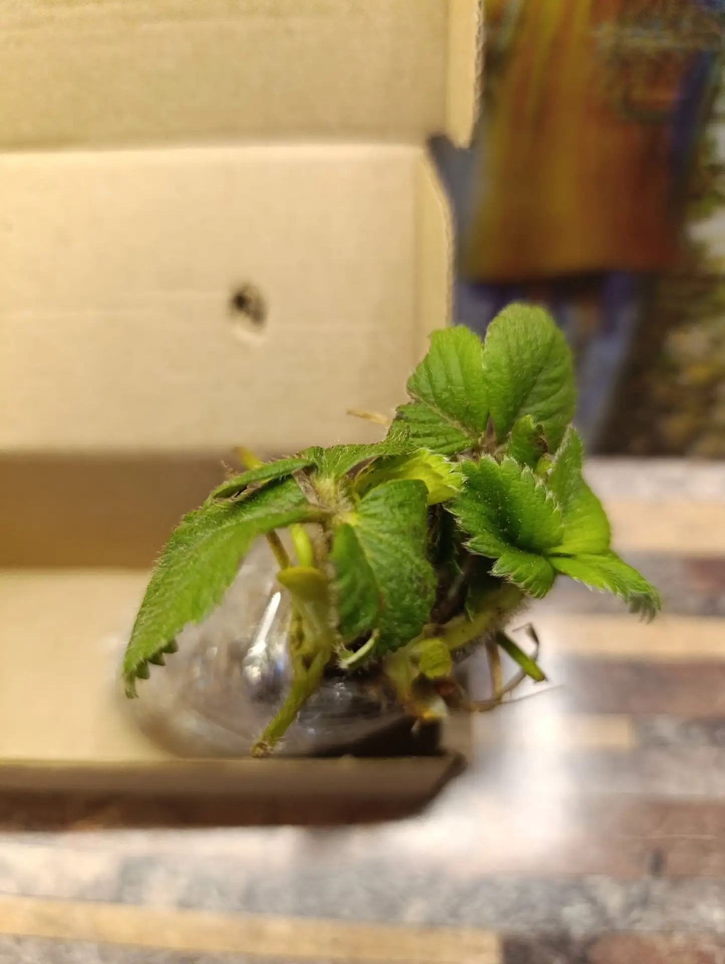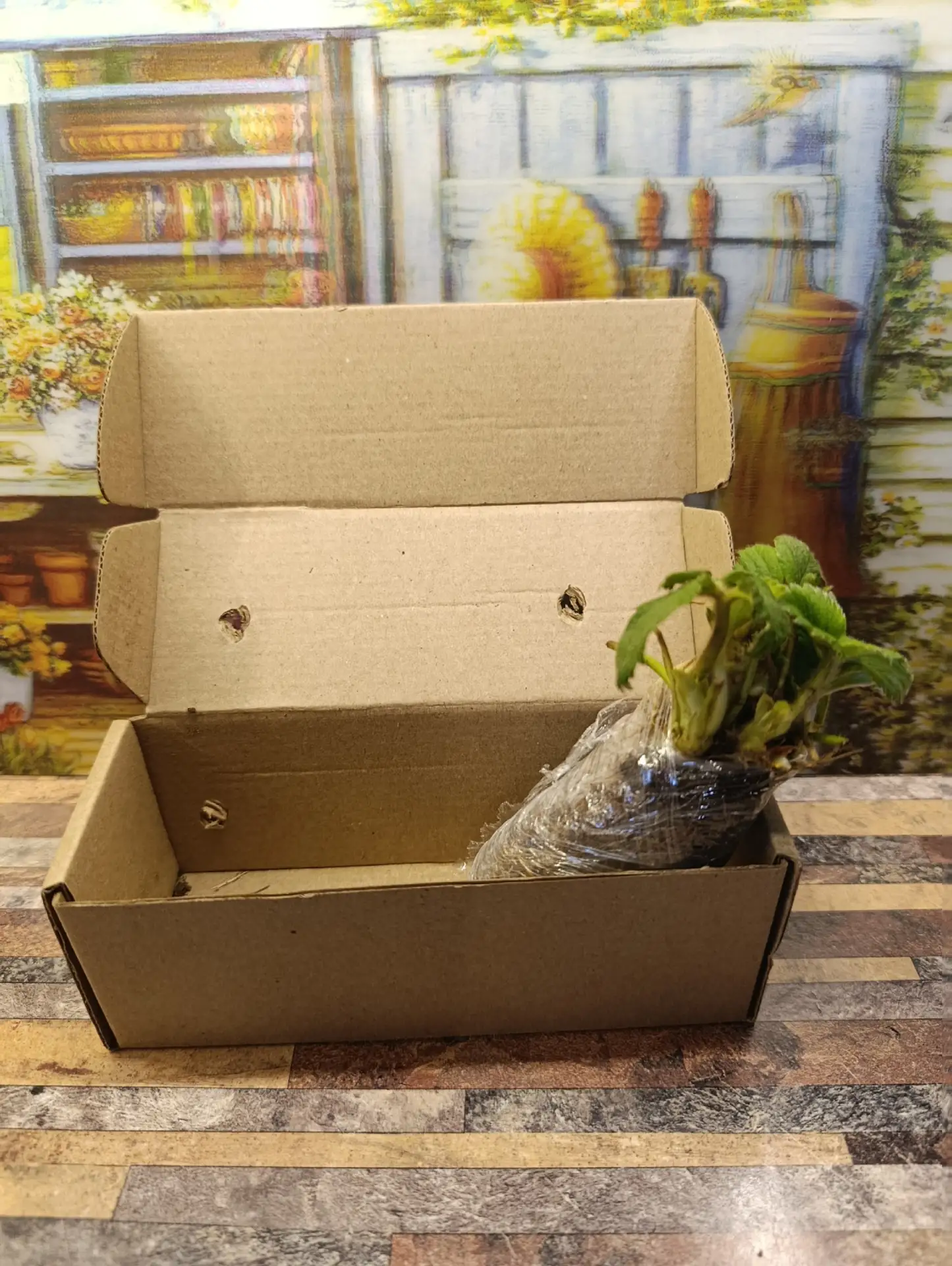 Ёлку я так и не разобрала. Причина банальная и страшная - прыгаем вместе с домом, боюсь подниматься на второй этаж. Сидим на первом этаже, разбираем заказ с клубникой из ВБ. Клубника крымская, но зимостойкая, приехала на сутки раньше. Из трёх сортов один выглядит средне, остальные прекрасно. Упакованы вот в такие коробочки, корни замотаны в целлофан. Надеюсь, что все приживутся