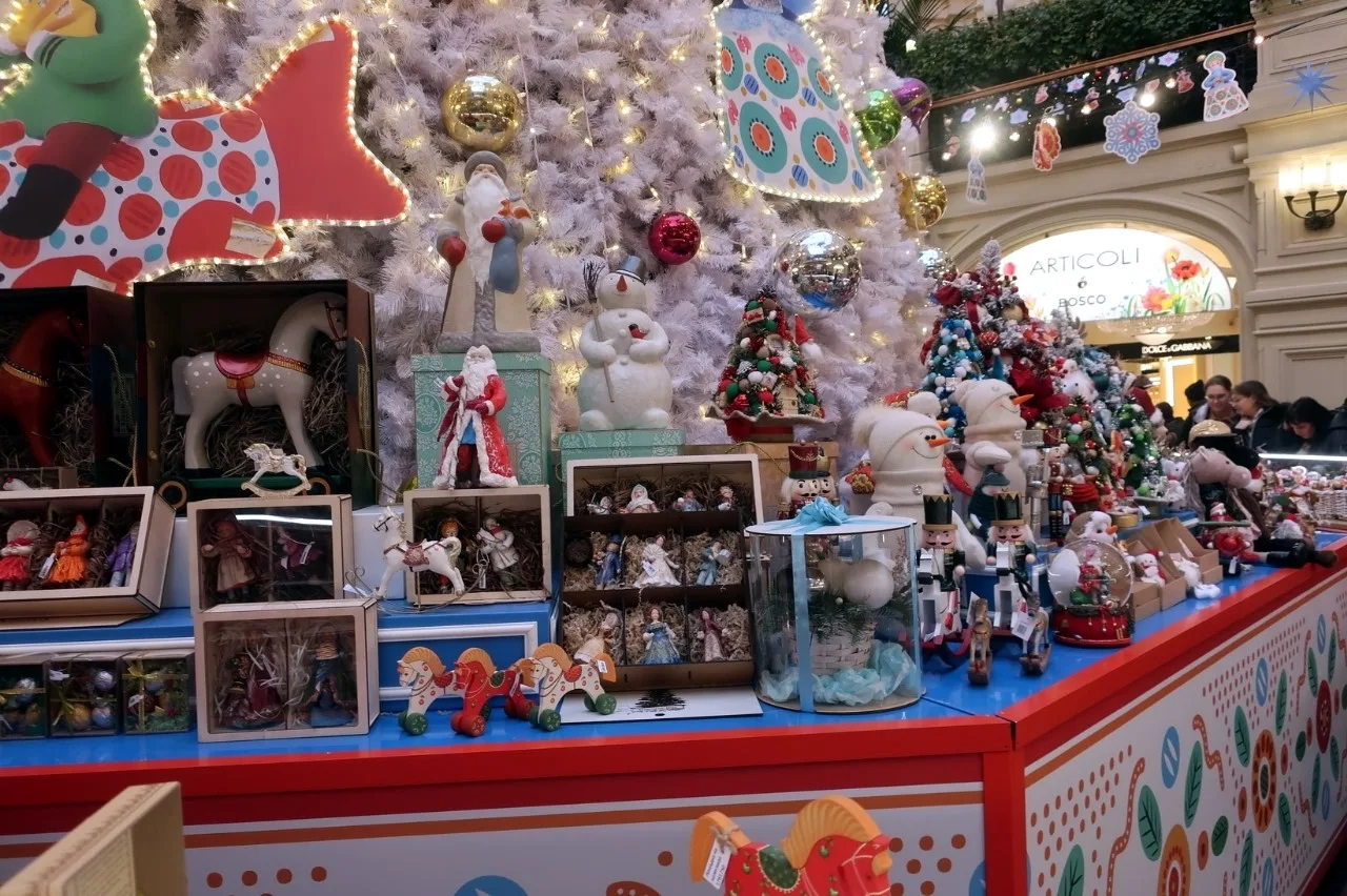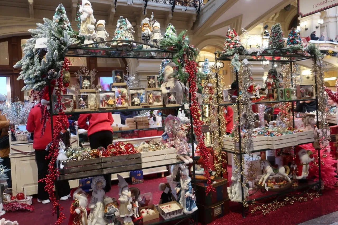 Увлечения сплачивают людей. Уже несколько лет мы виртуально дружим с Аллой Одинцовой. Надеюсь, в этом году она нам покажет свою волшебную новогоднюю квартиру, как и годами ранее. И для нас Алла сделала фоторепортаж из ГУМа. Фотографий очень много, давайте посмотрим, чем ГУМ в этом сезоне радует любителей ёлочных игрушек. Но не радует ценами. Игрушки Ариель от 12000 рублей. *к ГУМу у меня особое отношение, тут работала моя мама, моя крёстная, жена дяди и я*