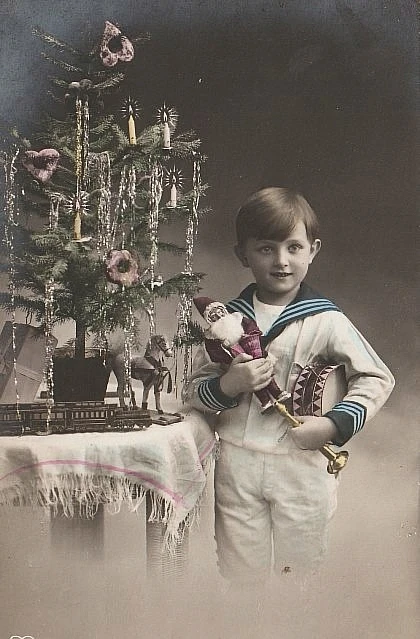 Какая замечательная старинная рождественская открытка. Вот так выглядел Дед Мороз в те времена. Странный какой-то. И не Санта Клаус, и не привычный нам Дед Мороз. У него тогда часто и имени не было. Старик и всё