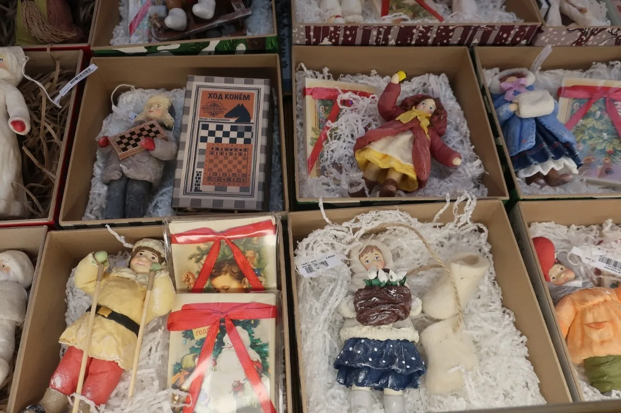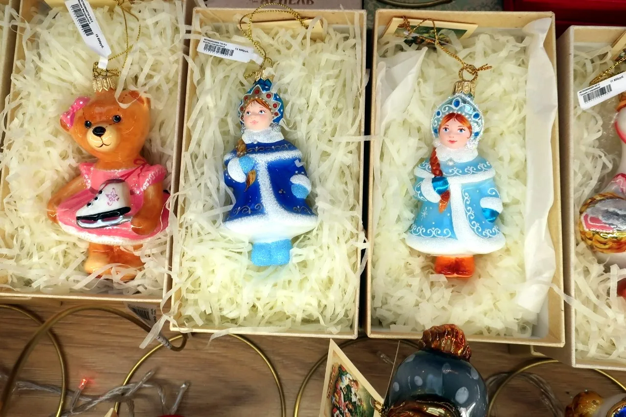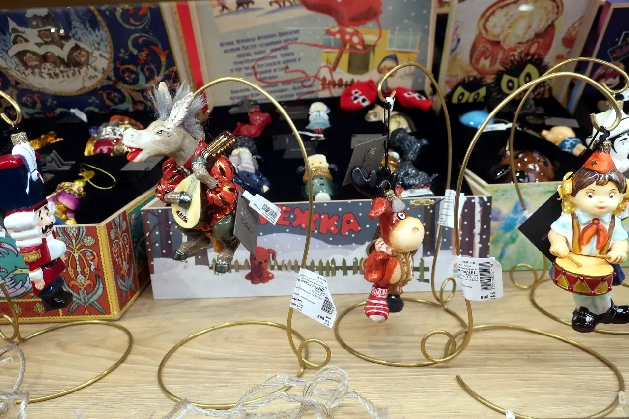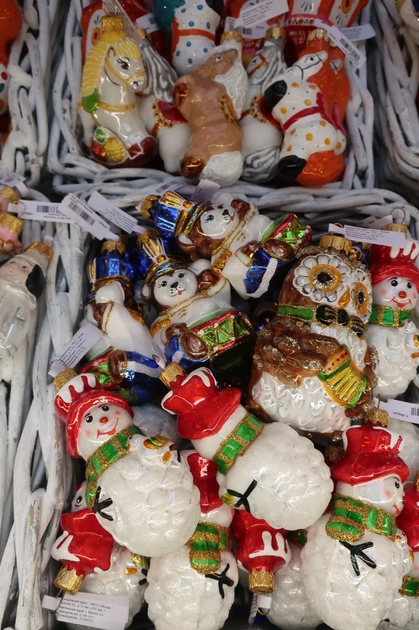 Продолжаем смотреть на ассортимент ГУМа. Игрушки вроде знакомые, но могу только некоторые опознать. Жуткие коломеевские Снегурочки в голубом😀